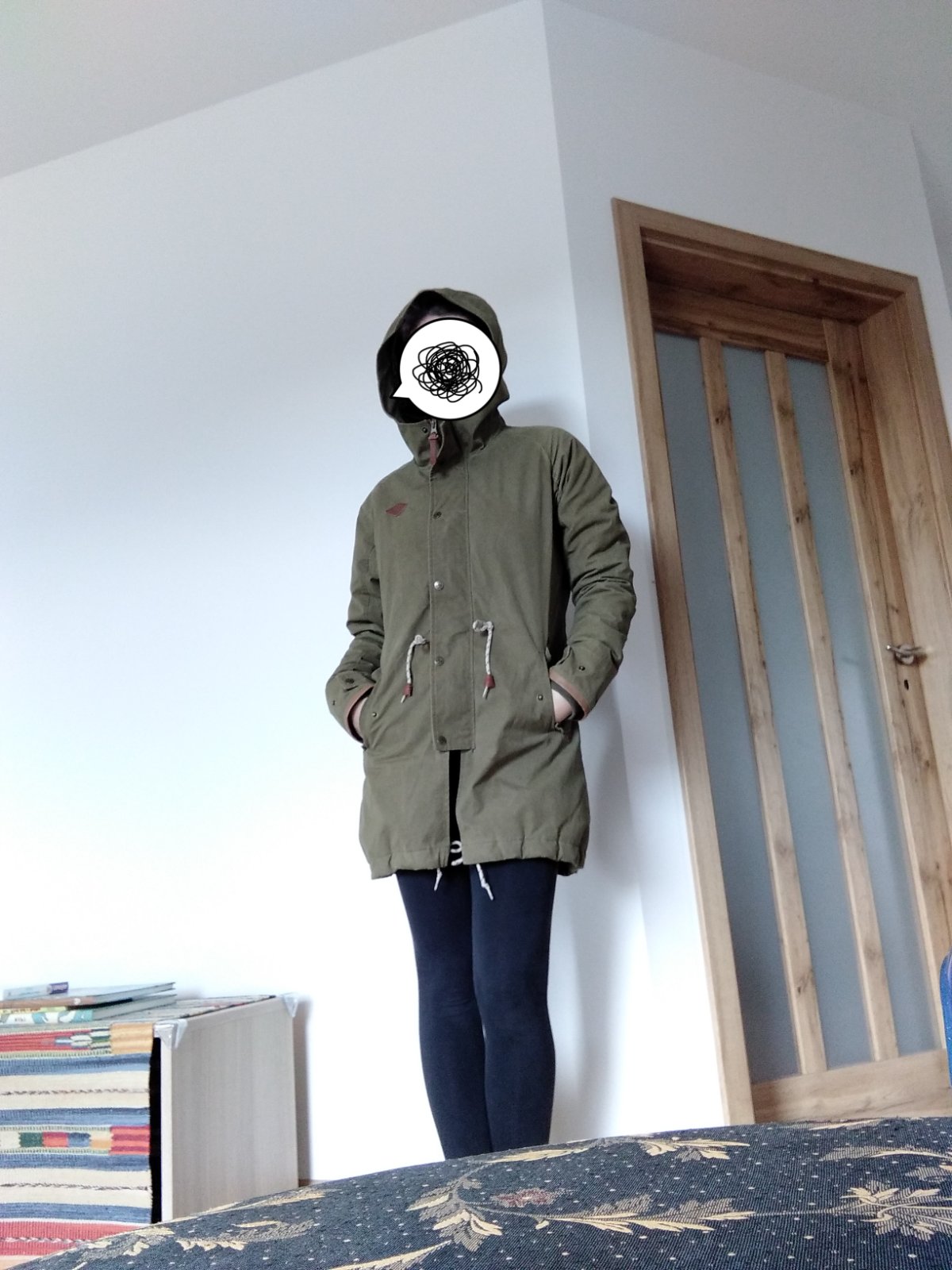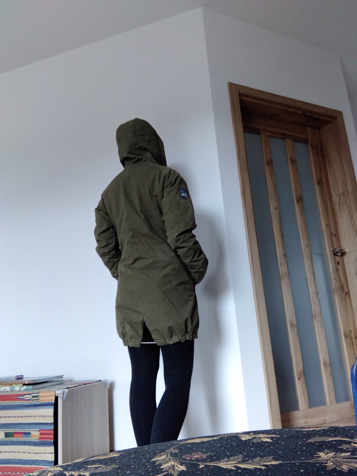 Predam kvalitnu zimnu bundu z recyklovaneho materialu. Da sa navoskovat, aby bola vodeodolna (este nebola voskovana). Ma dole rozparok, aby sa v nej dalo hybat, sportovat. Ja som si tam pridala snurku, ale povodne nebola. Nosena malo. Viac info tu: https://www.neonmars.sk/zimne-street-bundy/damska-zimna-street-bunda-picture-window-farba-kaki/