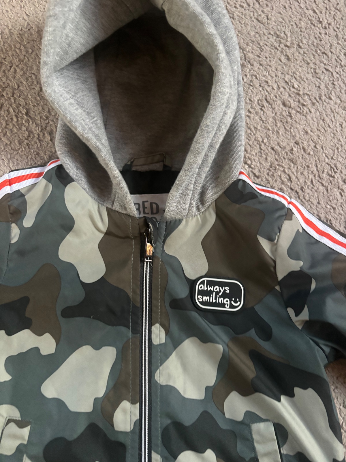 Milá šušťáková nosená bundička, takže samozrejme na látkovych častiach sú žmolky. Je písaná velkosť 80/86 ale menšia, preto udávam 74.