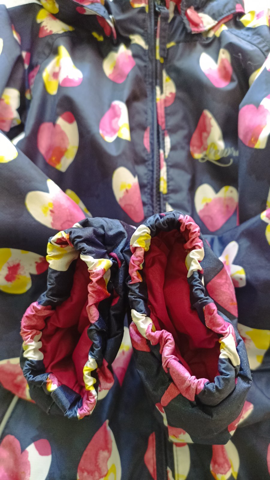 Bez poškodení, dcérka vyrástla 🙂 ponúkame ďalej. Odnímateľná kapucňa.