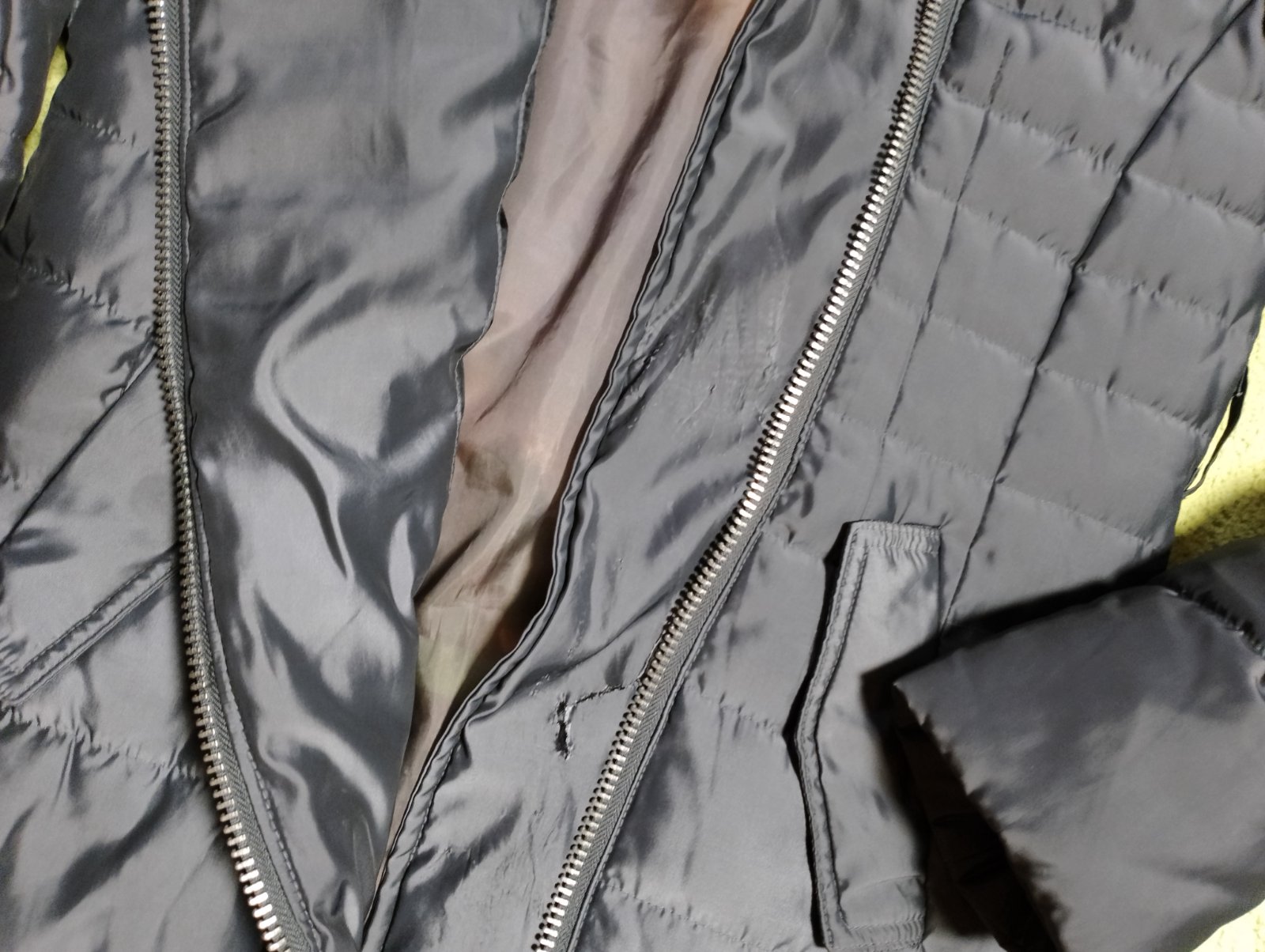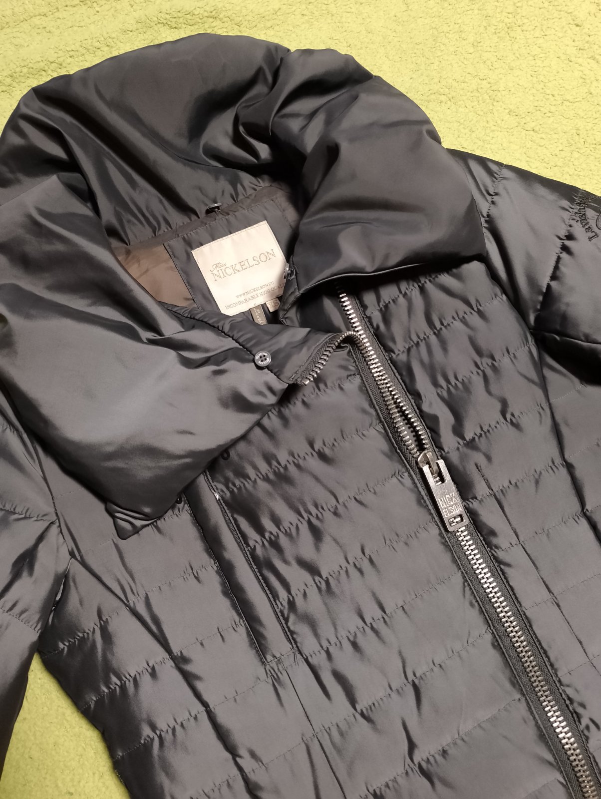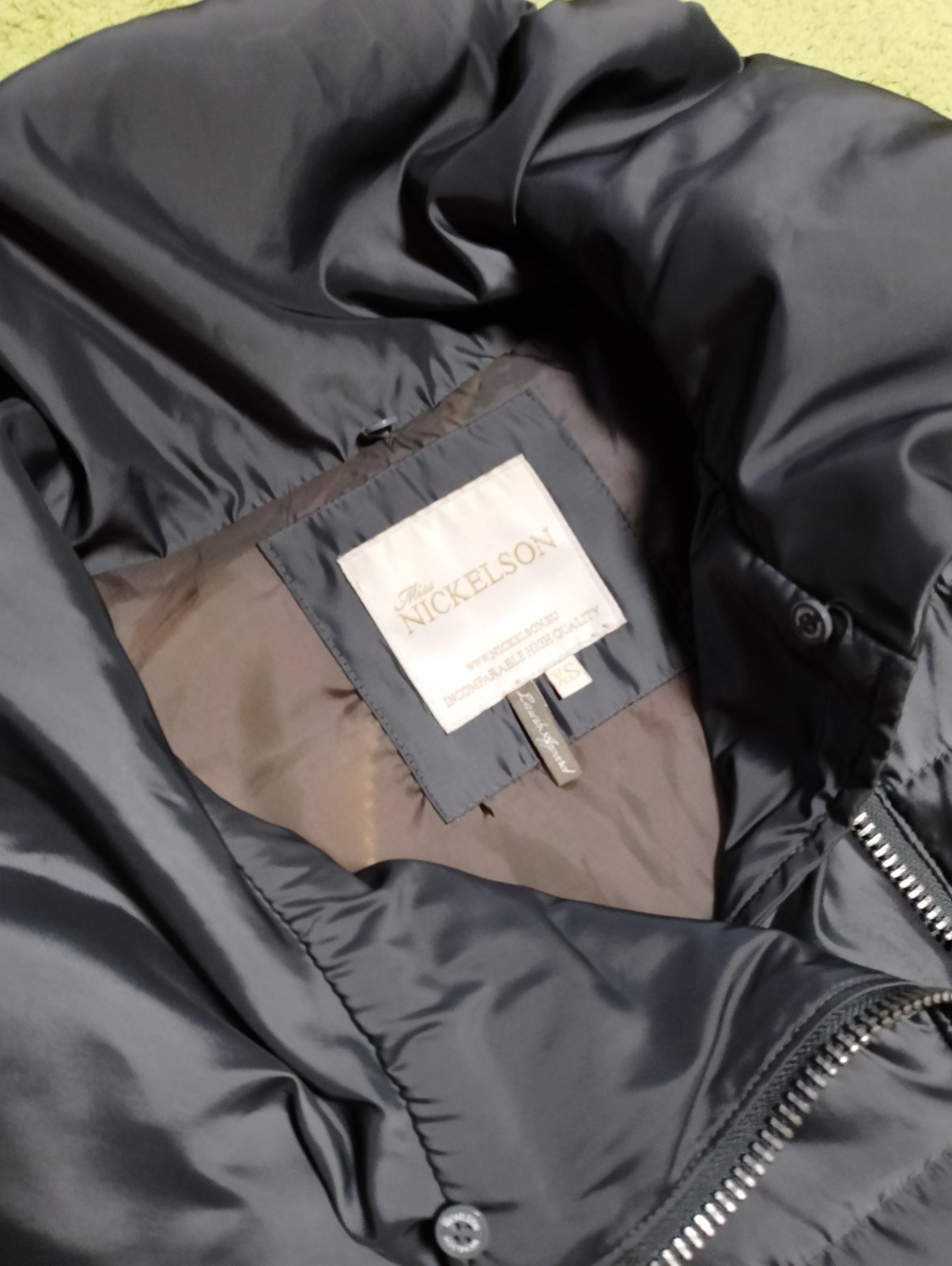 Nosena v dobrom stave, veľkosť udaná XS, vnútri zasita látka ako sa zachytávala do zipsu. Dlhšia parádna na zimu, antracitová farba .