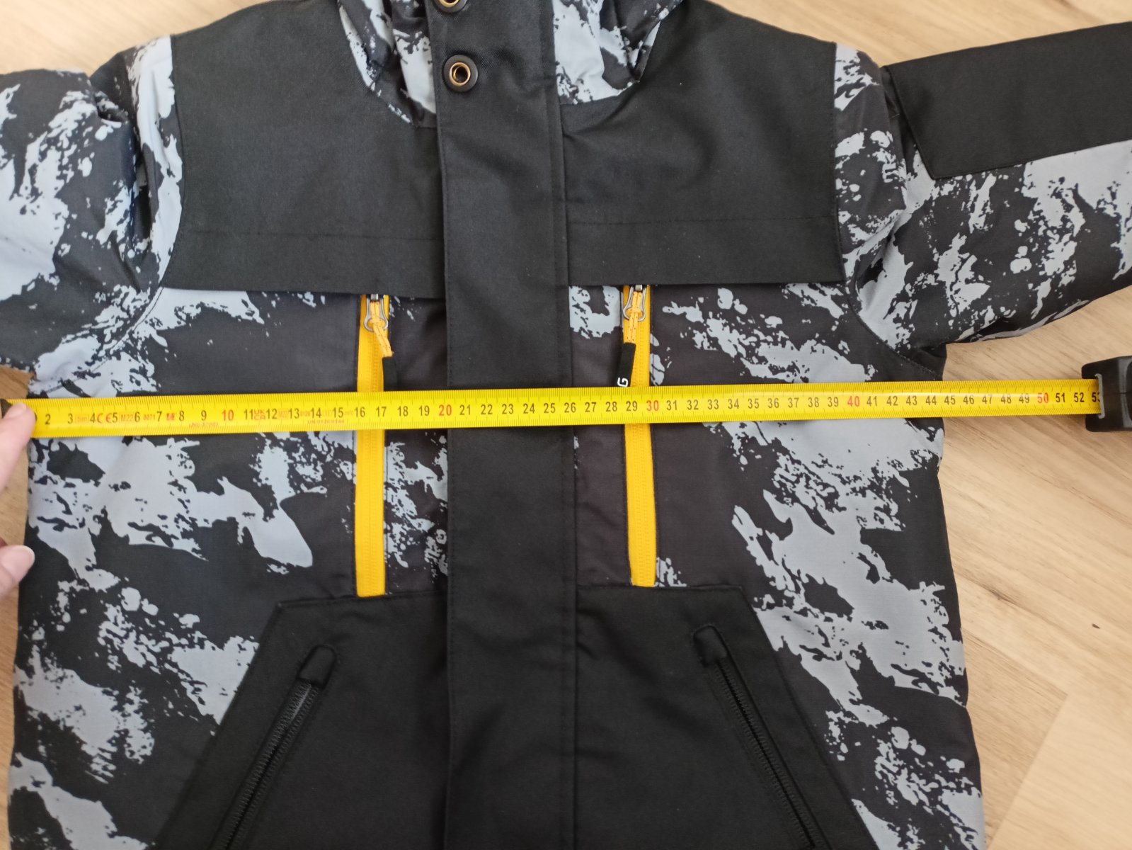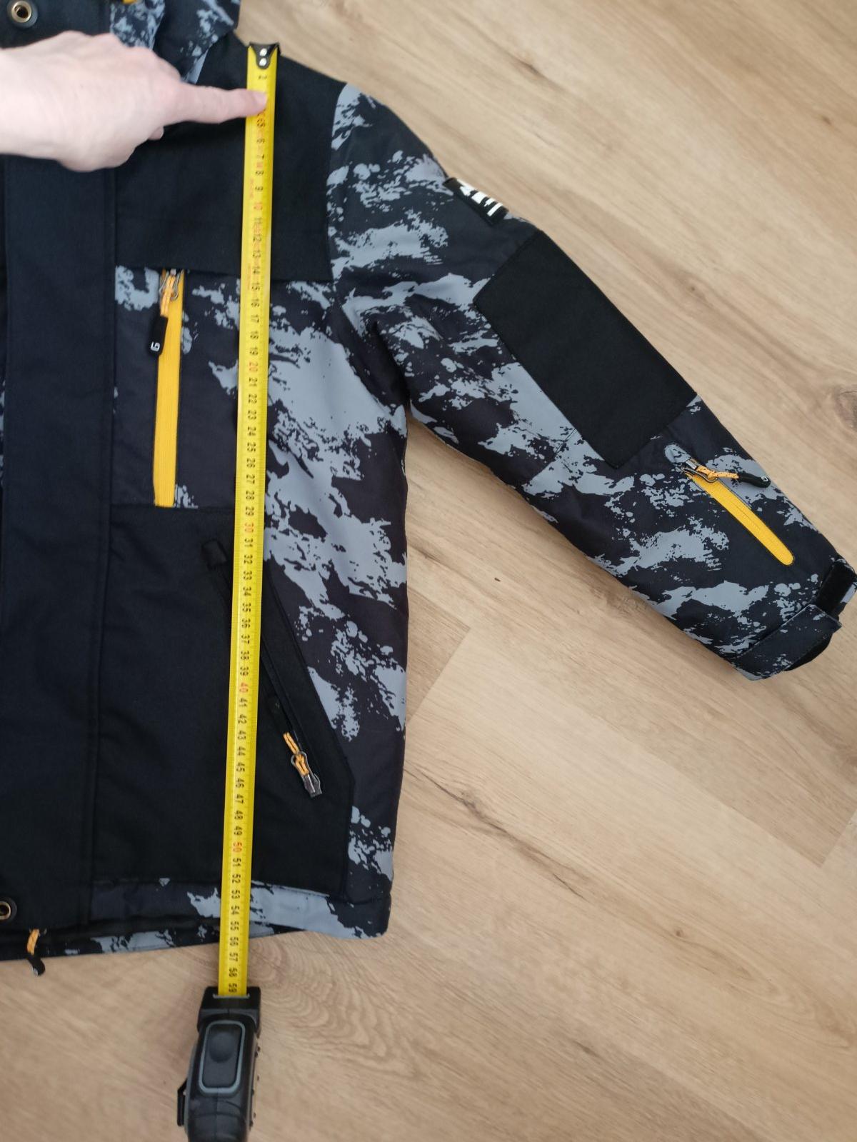 Veľmi zachovalá zimná bunda, bez poškodenia, so snehovým pásom. Rozmery vo fotkách.