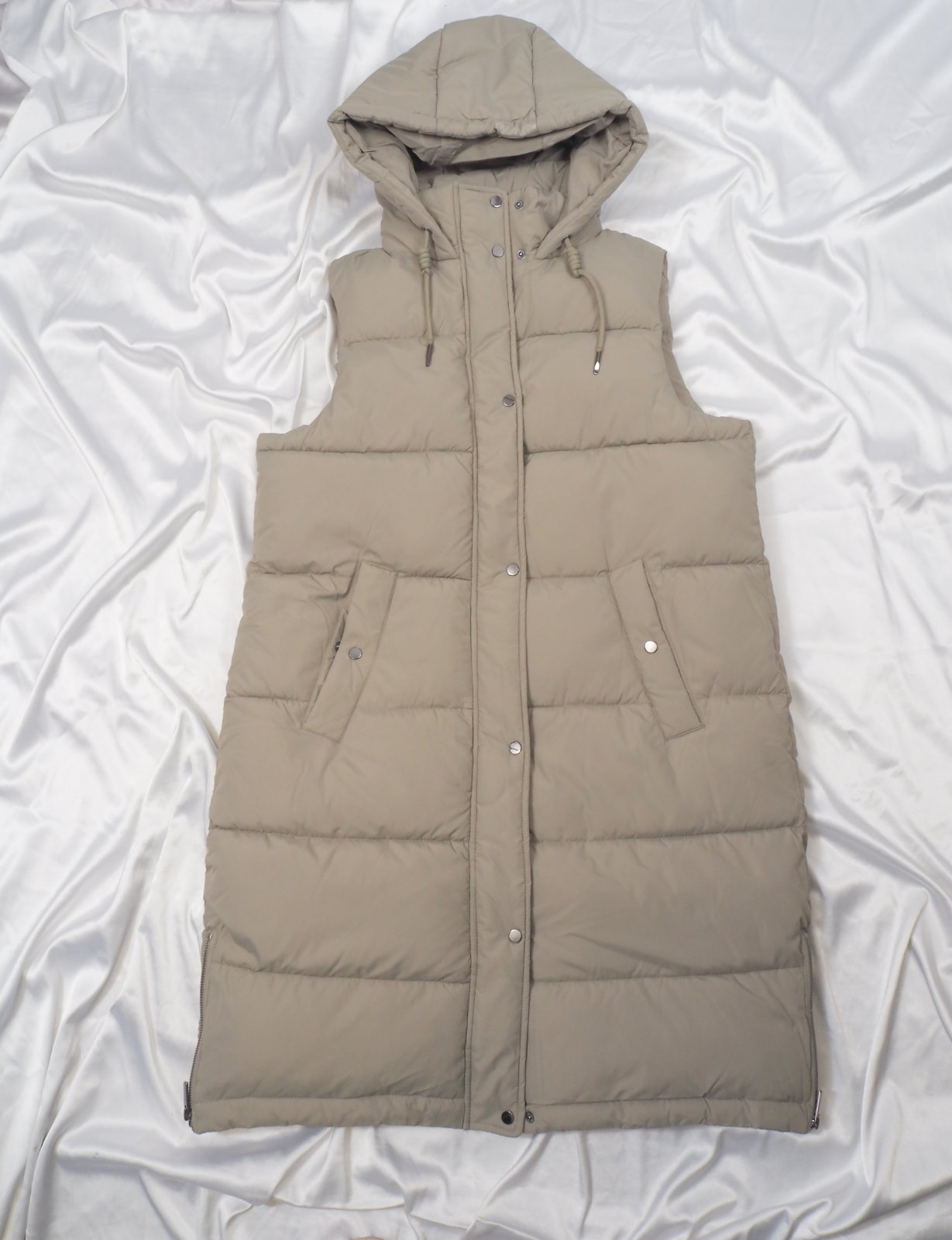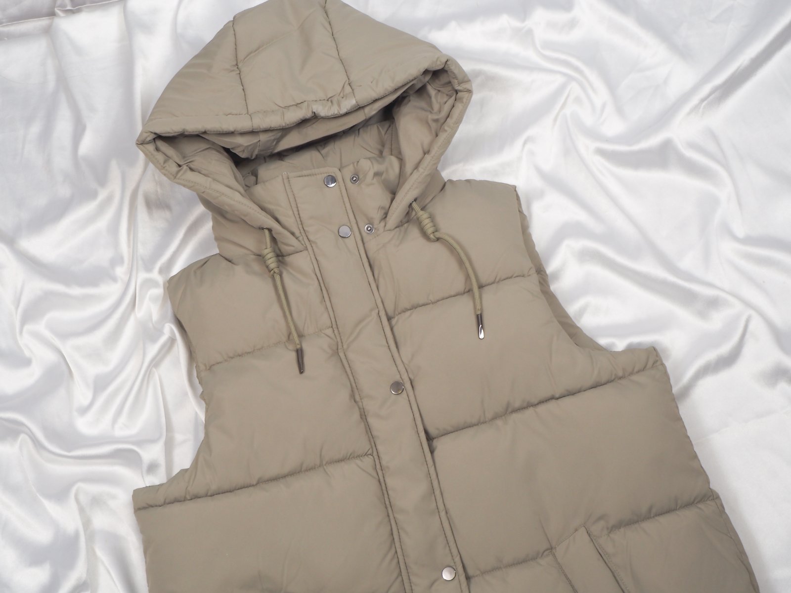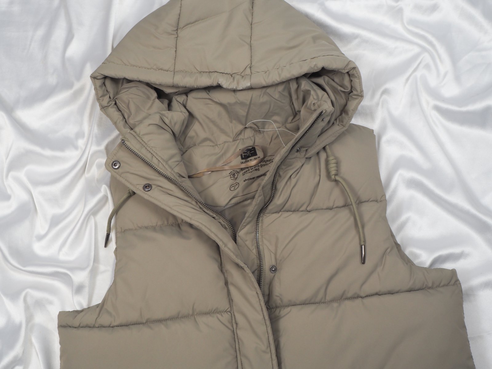 Kvalitná zimná vesta, zapínanie na zips a légu s cvočkami, vpredu vrecká, bočné zipsy, nová s visačkou....farba bledozelená, ako originálna fotka trička.