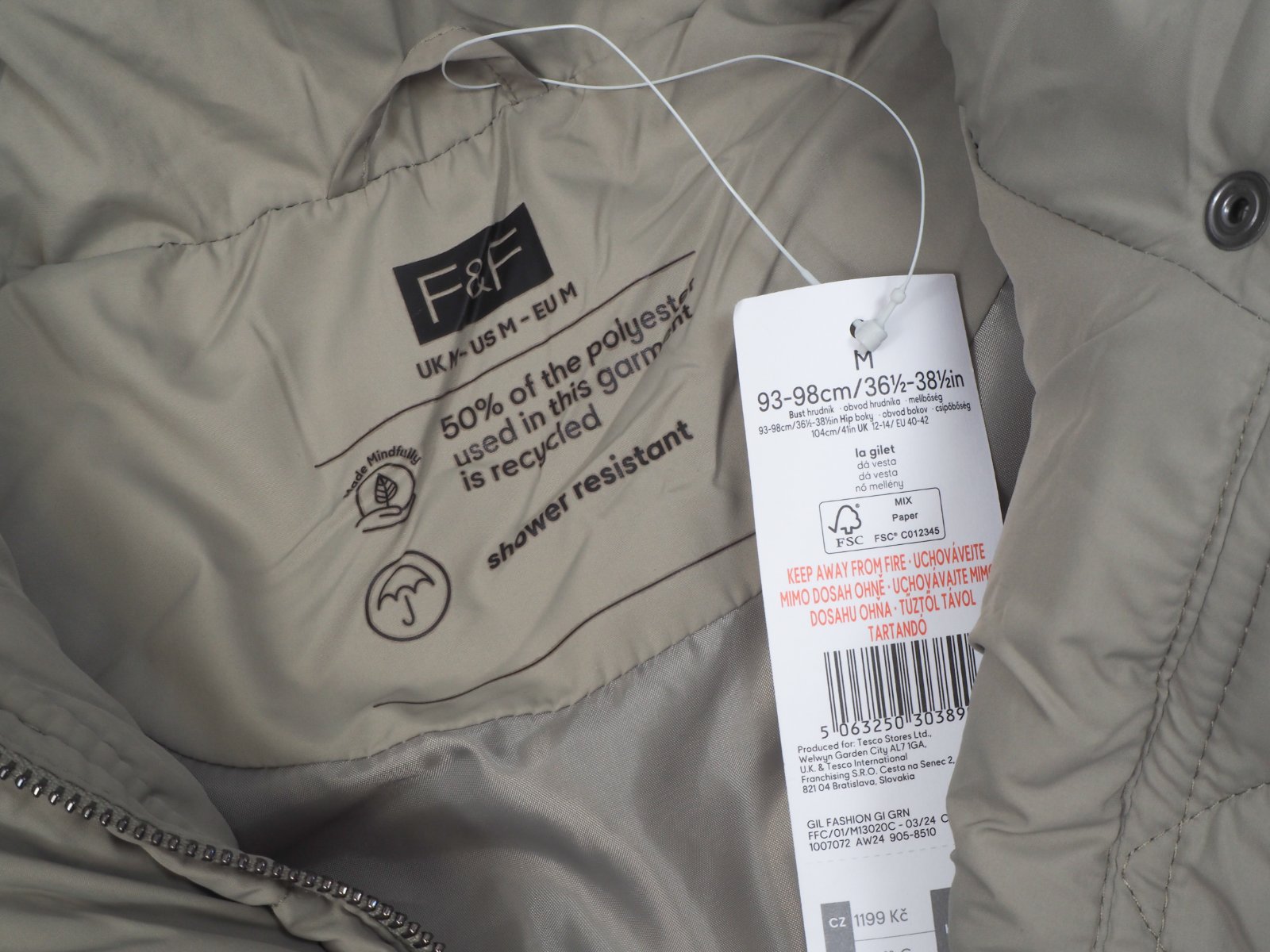 Kvalitná zimná vesta F&F bledozelená