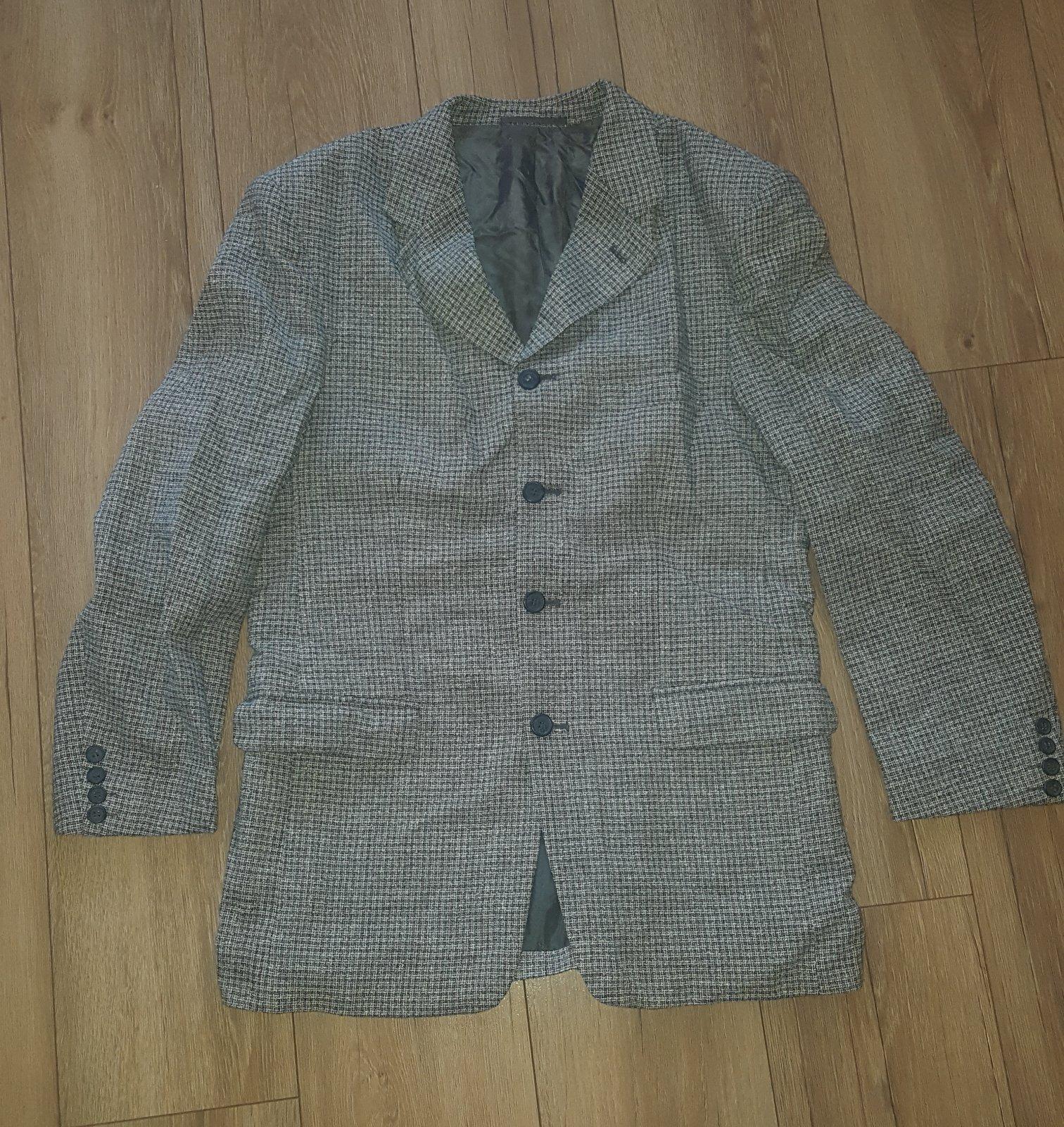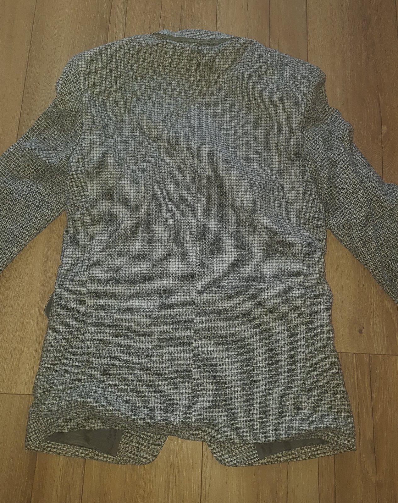 Sako šité na mieru v značkovom pánskom salóne, pôvodne stálo 50 e, podšité, je sivo biele malilinká kocka, vpredu vrecká, výborný stav
