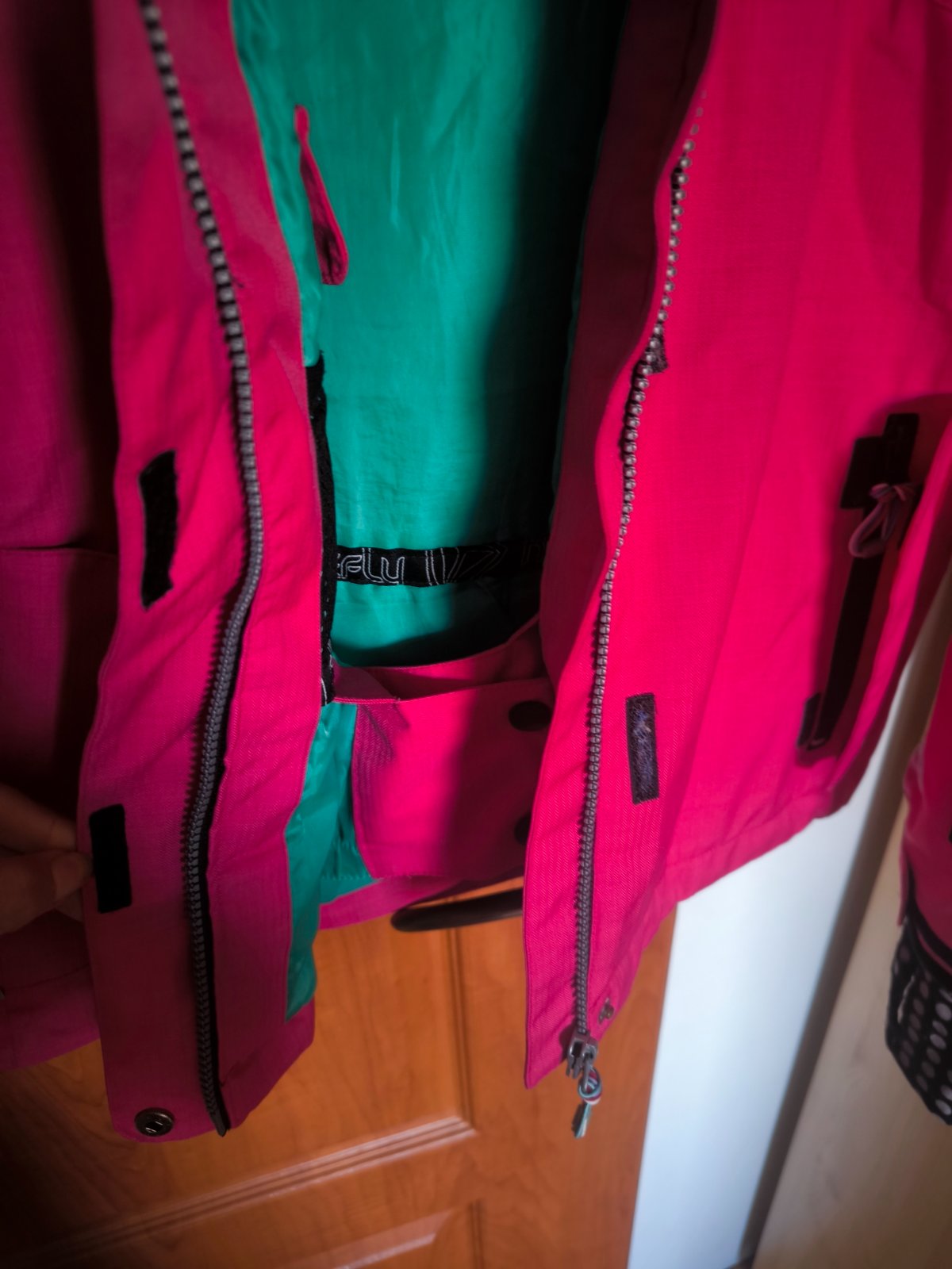 Krasna lyziarska bundicka vo vybornom stave- nasla som jednu malu bielu bodku od vyroby (vid foto)- je to na prekryti zipsu. ROZMERY: dlzka rukavu od kapucne: 75cm, celkova dlzka od pleca: 72cm, si...