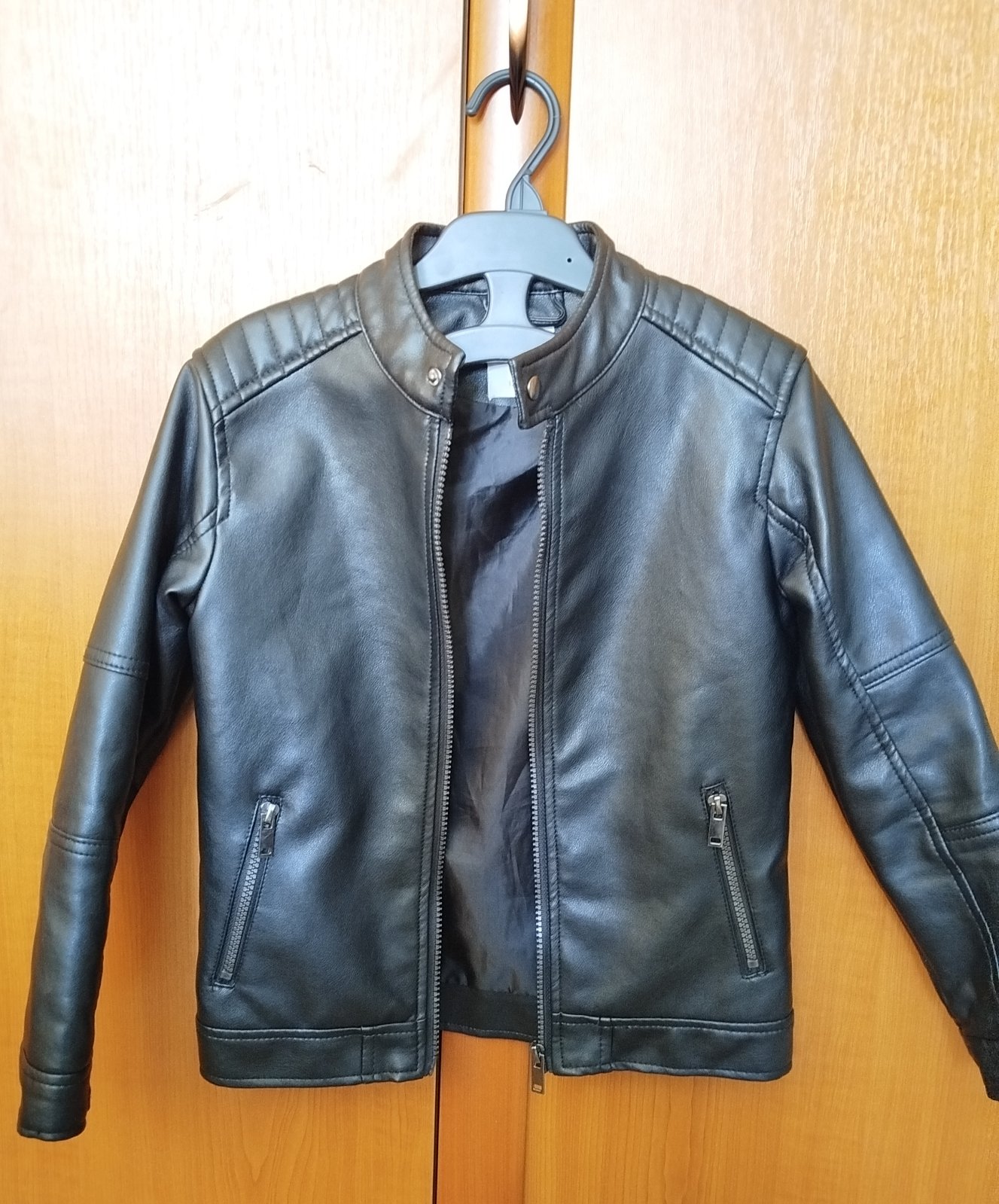 Koženková chlapčenská bunda veľ.134, minimálne nosená, ako nová, bez poškodení.