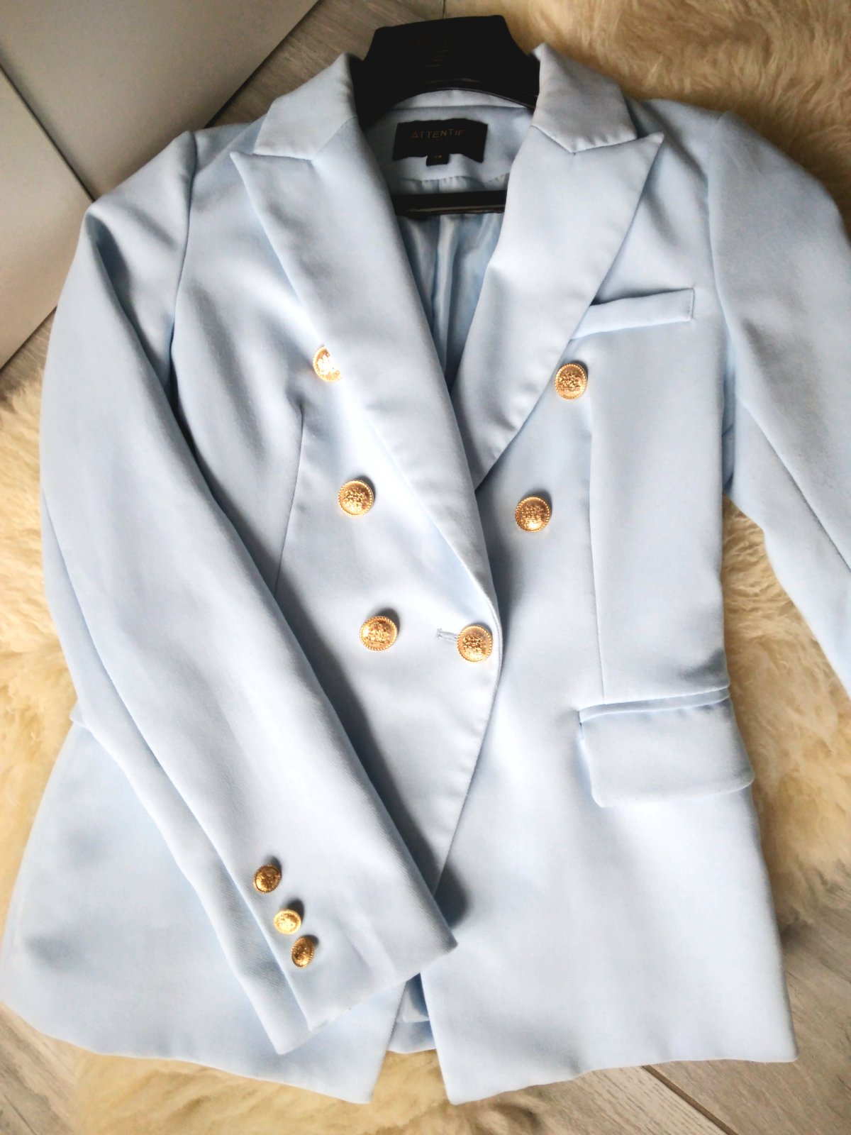 Predám v TOP stave sako značky Attentif. Skutočná farba je pastelová modra, na foto je sako svetlejšie.
