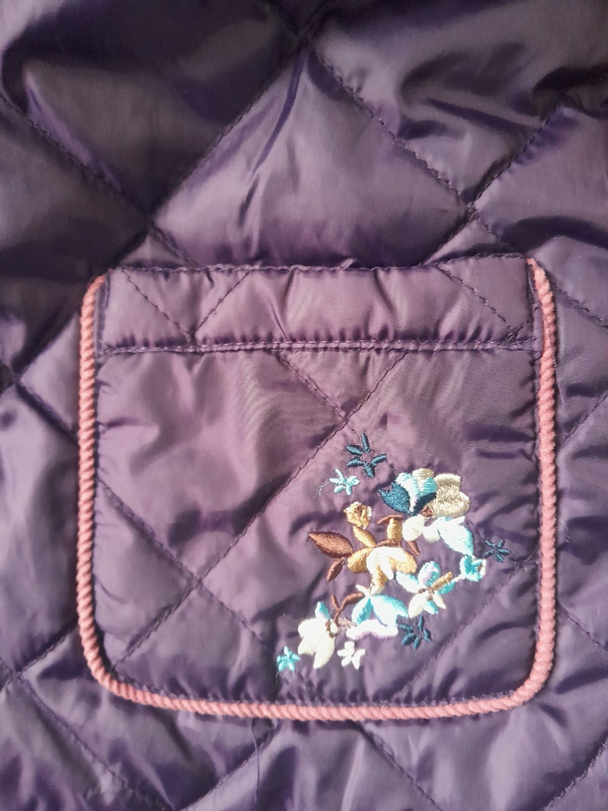 Krásna zateplená tmavo fialová bunda (veľmi praktická,nebolo hneď vidieť špinu) veľkosť 2-3 roky miery na fotkách nižšie. Bez poškodenia.