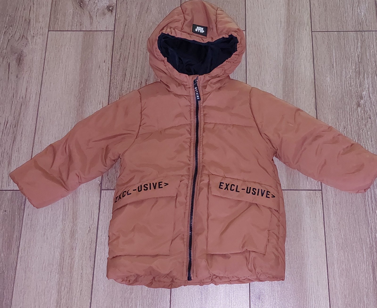 Pekny noseny stav, nie je zatrhnuta. Zips sa zo spodu trochu tazsie zapina, prip.si ho treba dat vymenit ( je funkcny, len teda upozornujem). Velkost uvadzana 92, ale je vacsia. Dlzka - 43 cm.