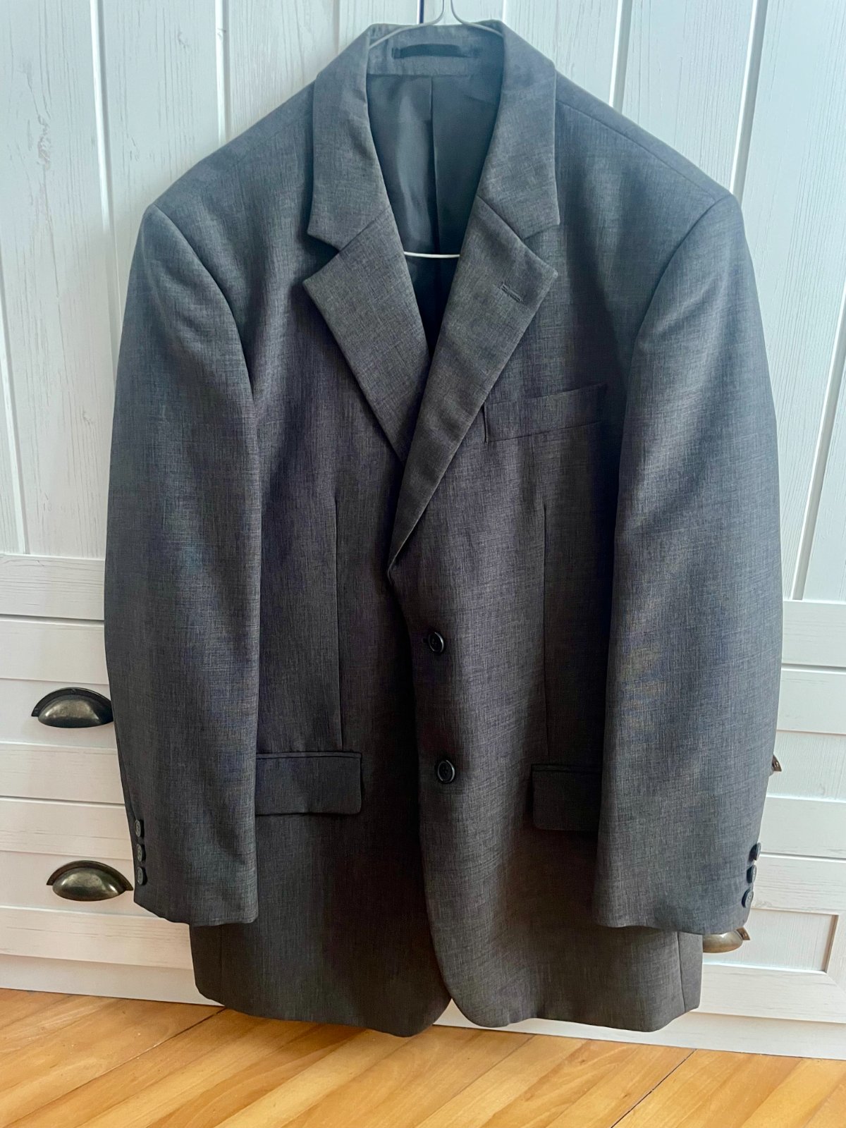 Veškosť 50/52, oblečené 2x, bratovi už nesedí veľkosť. Posúvam ďalej za symbolickú cenu. Odporúčam dať do čistiarne.