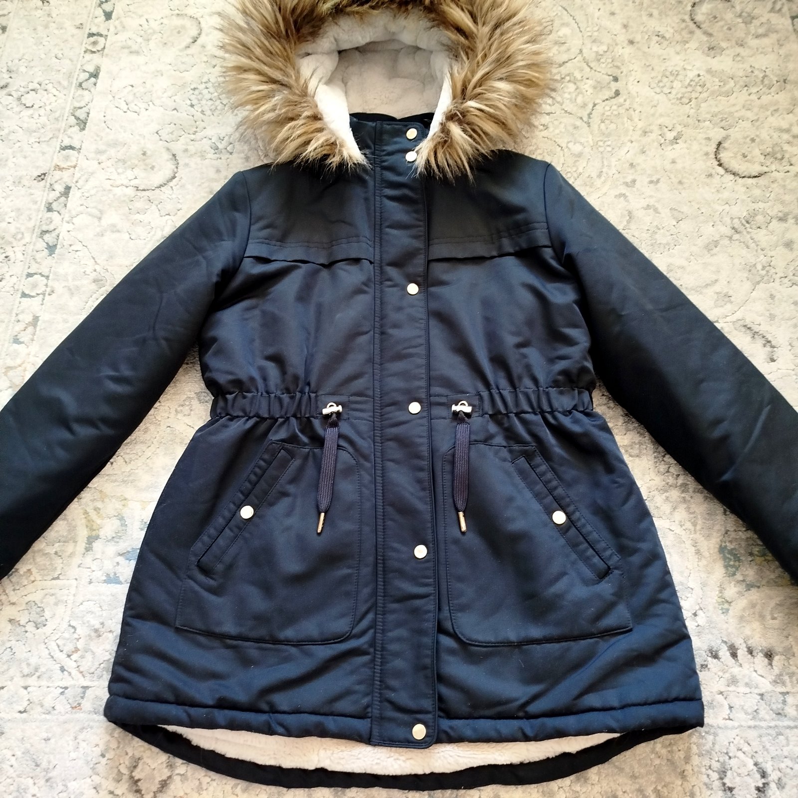 Krásna huňatá zimná parka značky F&F, veľkosť 164. Je v super stave, nosená len jednu sezónu. Vnútri je mäkučký huňatý kožúšok, aj kapucka je huňatá. Nosenie vidno trochu na cvočkoch a tie zlaté prvky na sťahovanie pásu sú z kraja ošúchané. Myslím že pri bežnom nosení to ani nevidno. Dĺžka 75cm, prsia 50cm, pás v kľude 43cm ale je na gumu, natiahne sa ak treba. Rukáv od krku 70cm + 2cm vyčnieva ešte patent. Cena + pošta.