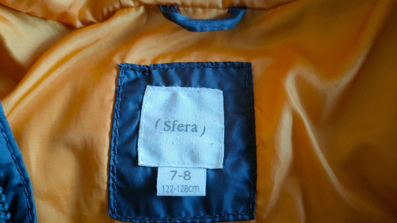 Štylová detská zimná vetrovka zn. Sfera, na 7-8 r., veľ.122-128. Kvalitná a teplá. Nesie známky poškodenia (viď foto) - roztrhnutá vnútorná strana zips.zapínania - re sfunkčnenie zipsu je nevyhnutné zašiť, viacero roztrhnutí - viď foto (máme doma psíka 🥺). Pôvodne zakúpená v Španielsku, originálna cena: 40 Eur. Výrazne znížená cena kvôli poškodeniam.