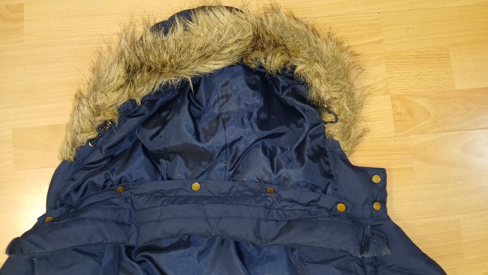 nosené v dobrom stave bez poškodenia, dĺžka 83 cm,, šírka pod pazúškami 50 cm, dĺžka rukávu od ramena 61 cm