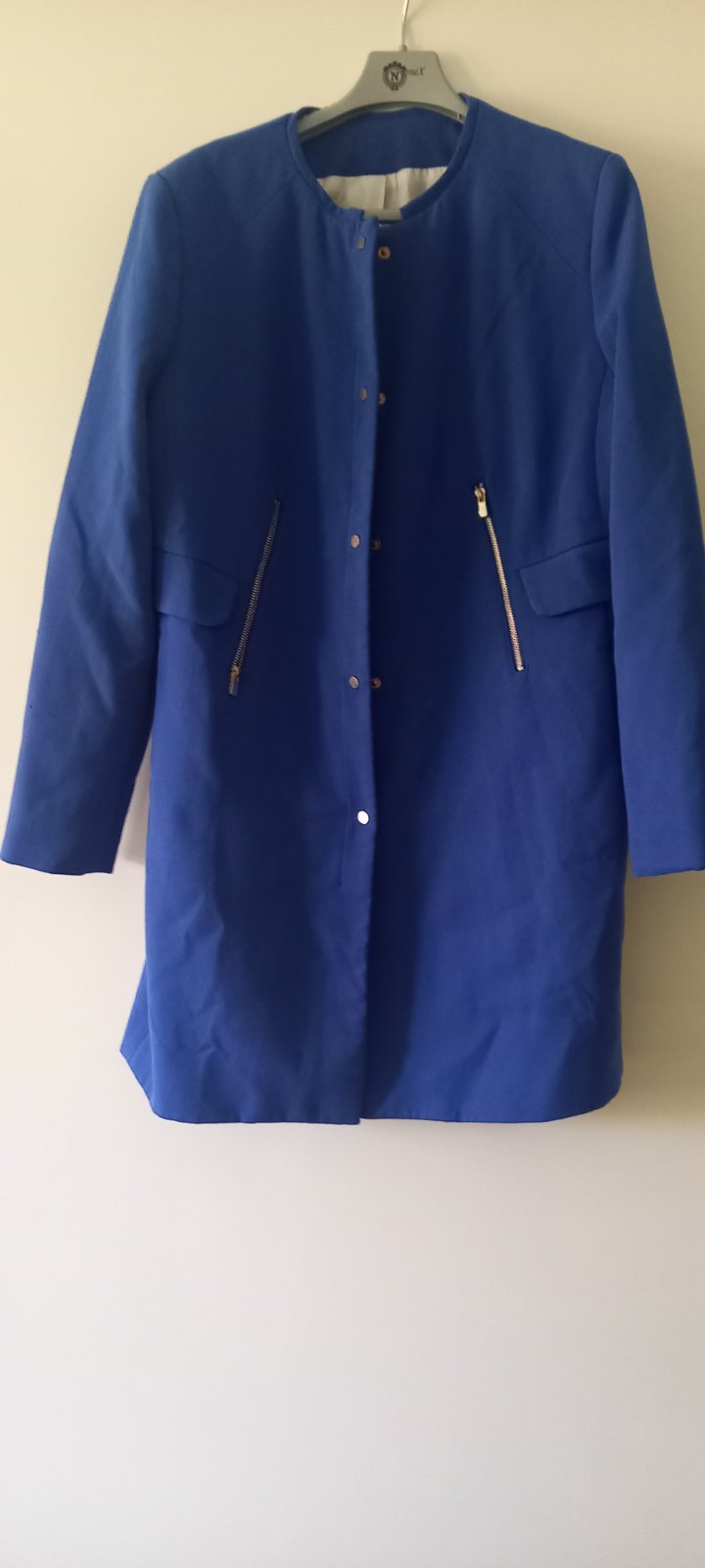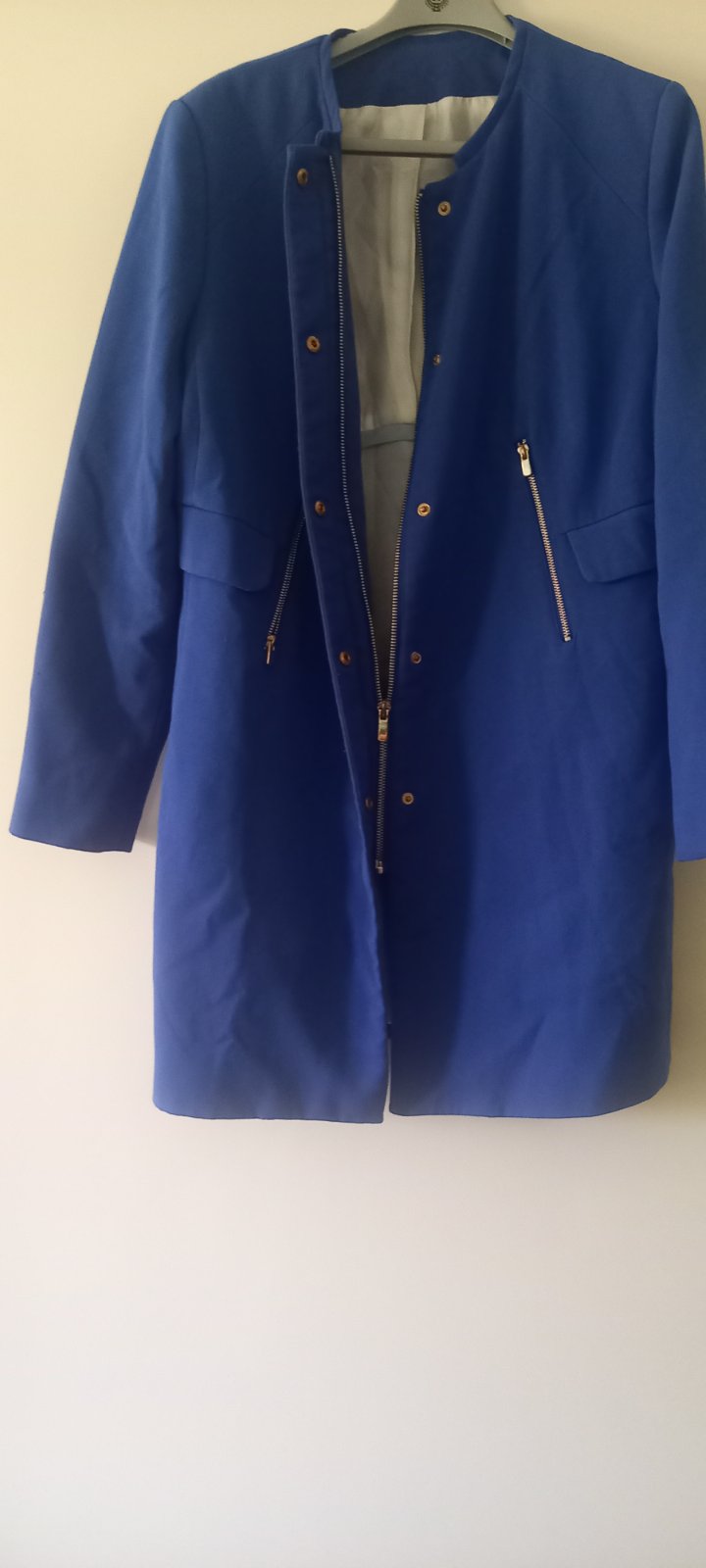Farba taka kráľovská modrá sýta- foťák mi už dobre nefoti, veľkosť nie je uvedená odhadujem 40 v prípade záujmu premeriam, sako bolo nosené, pri zahladeni z blízka sa nájde minizmolcek a nosenie vidieť trochu aj na gombíkoch, su trochu suchnute, sako sa zapína aj na zips