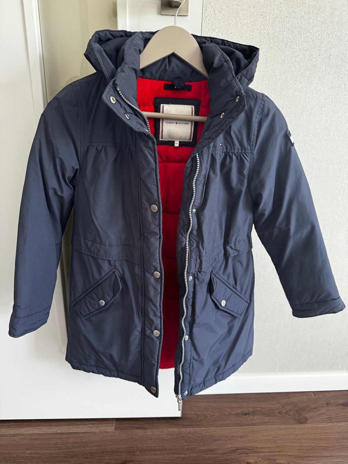 Predám dievčenskú páperovú bundu Tommy Hilfigers kapucou na zips a odopínateľnou kožušinkou,tmavomodrá farba veľkosť 140, v dobrom nosenom stave bez poškodení, rozmery na fotke. Ideálne osobne BA s...