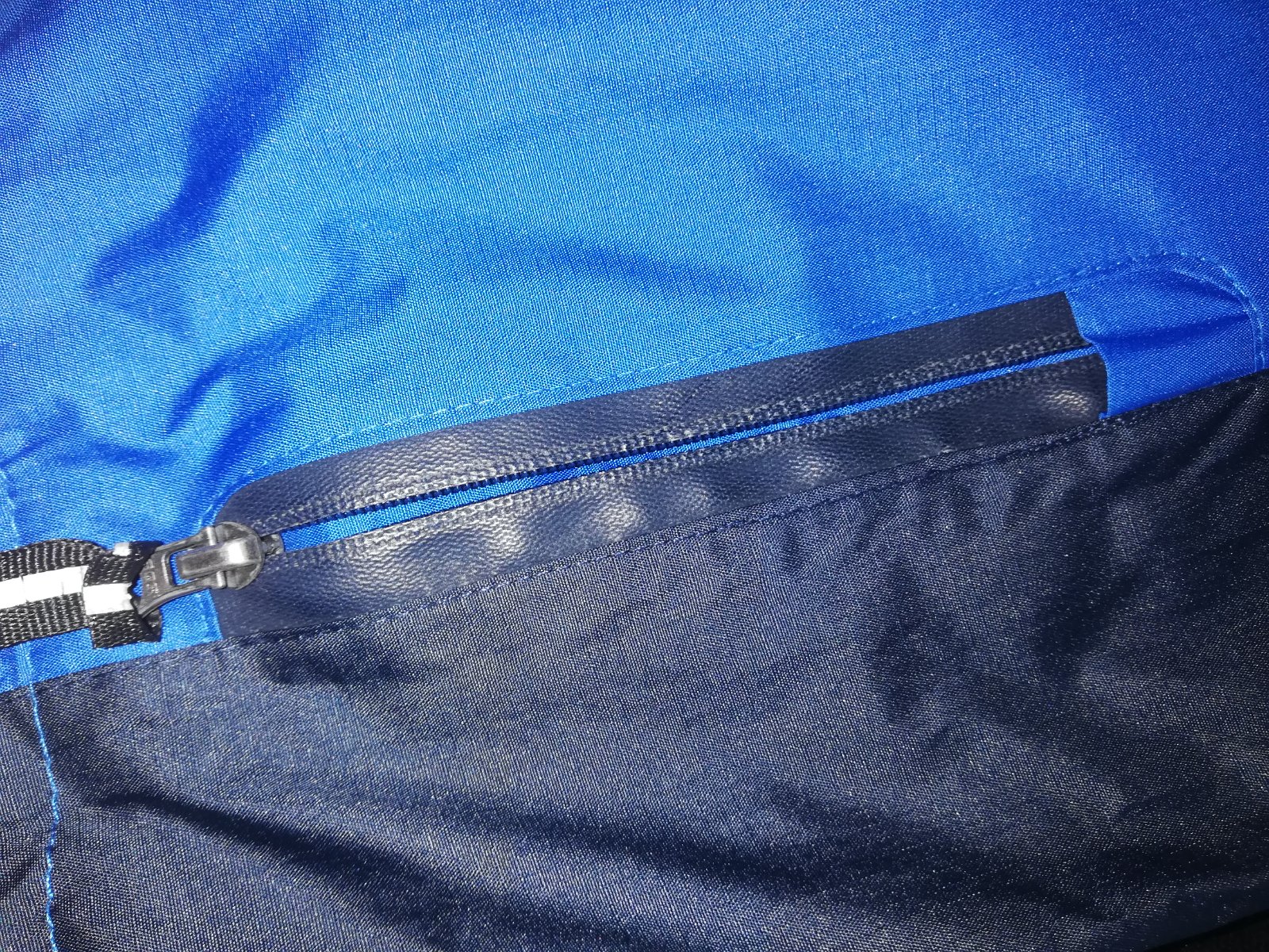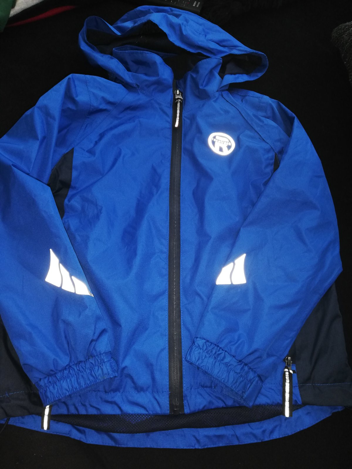 Vetrovka má flísovú vložku, ktorá sa dá odzipsovať a vznikna rak mikina a vetrovka - viď foto. V golieri je zrolovaná kapucňa. Bez poškodení. Dĺžka 50cm, šírka cez hrudník 43 cm, rukáv 47cm.