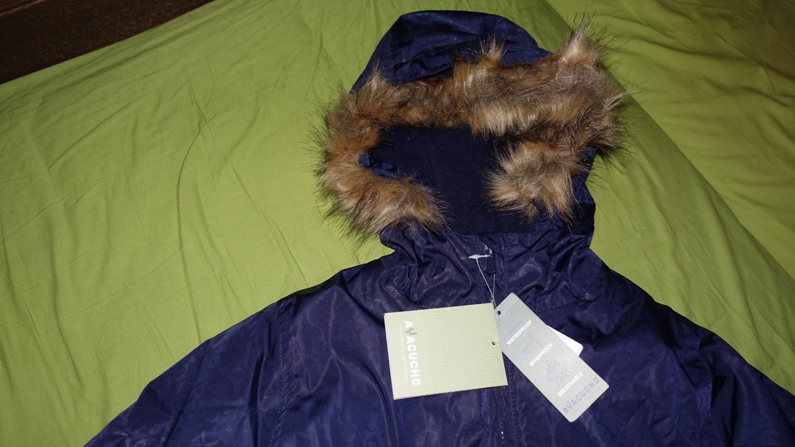 Krasna zimna bundicka- nova, s visackami. Je podsita flisom. Kozusinka sa da odopnut. V rukave ma patent proti prefuknutiu.
