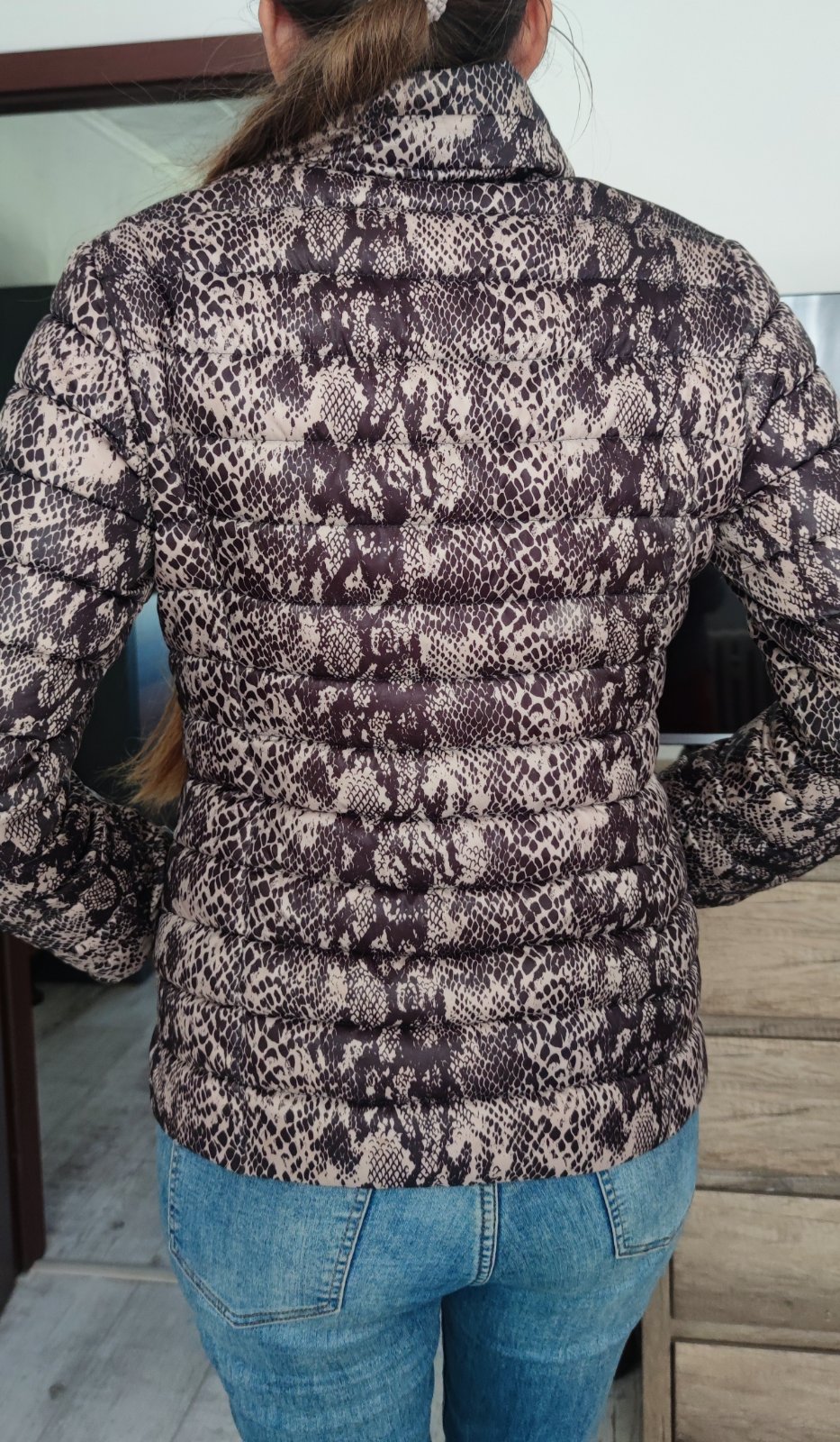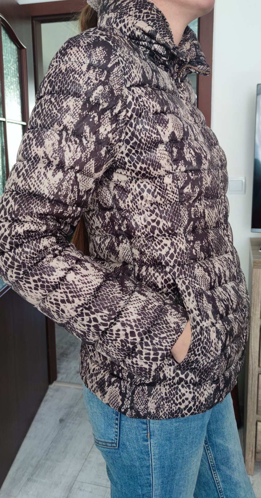 -je ľahučka, nosí sa na jar a jeseň,je pekne ušitá,je zaujímavá, veľkosť M/L,neni poškodená