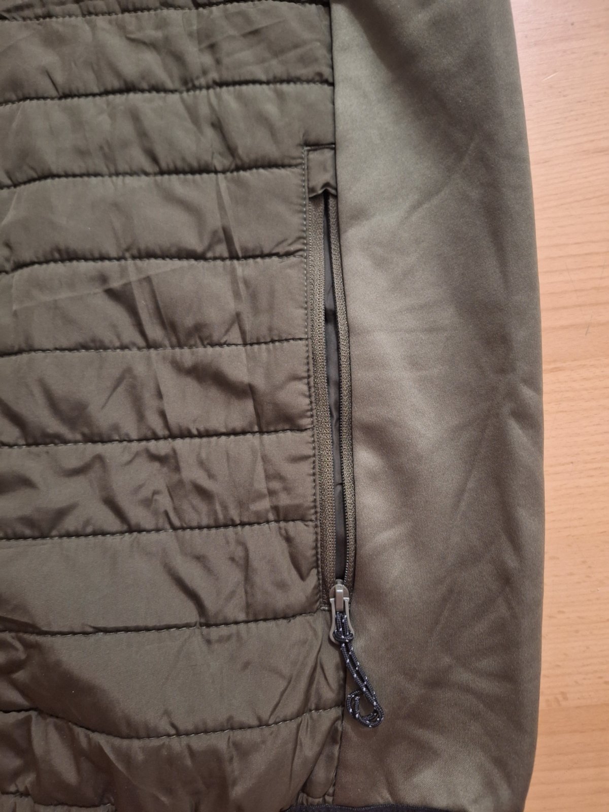 • Bunda kombinuje dva materiály - prešívanú časť na trupe a hladký, jednofarebný materiál na rukávoch, bokoch a kapucni.