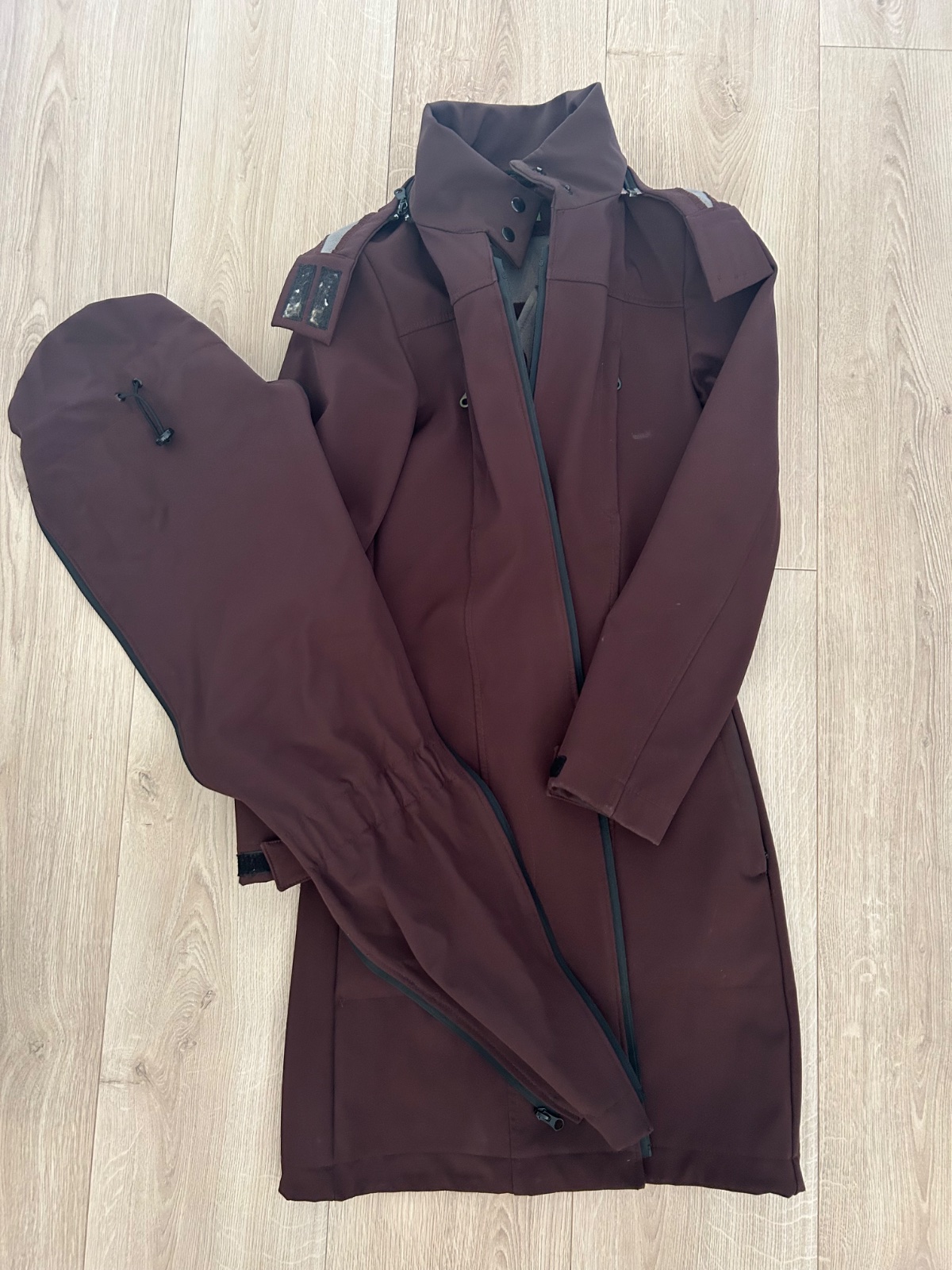 Posúvam úžasný softshelovy kabátiky LadyBug, veľkosť S, sedí však skôr na XS. Je bez kvietkov, takže je celý hnedý, neutrálny, športová elegancia. Je neprefukavy, maminka a bábätko je chránené pred vetrom i dažďom :)