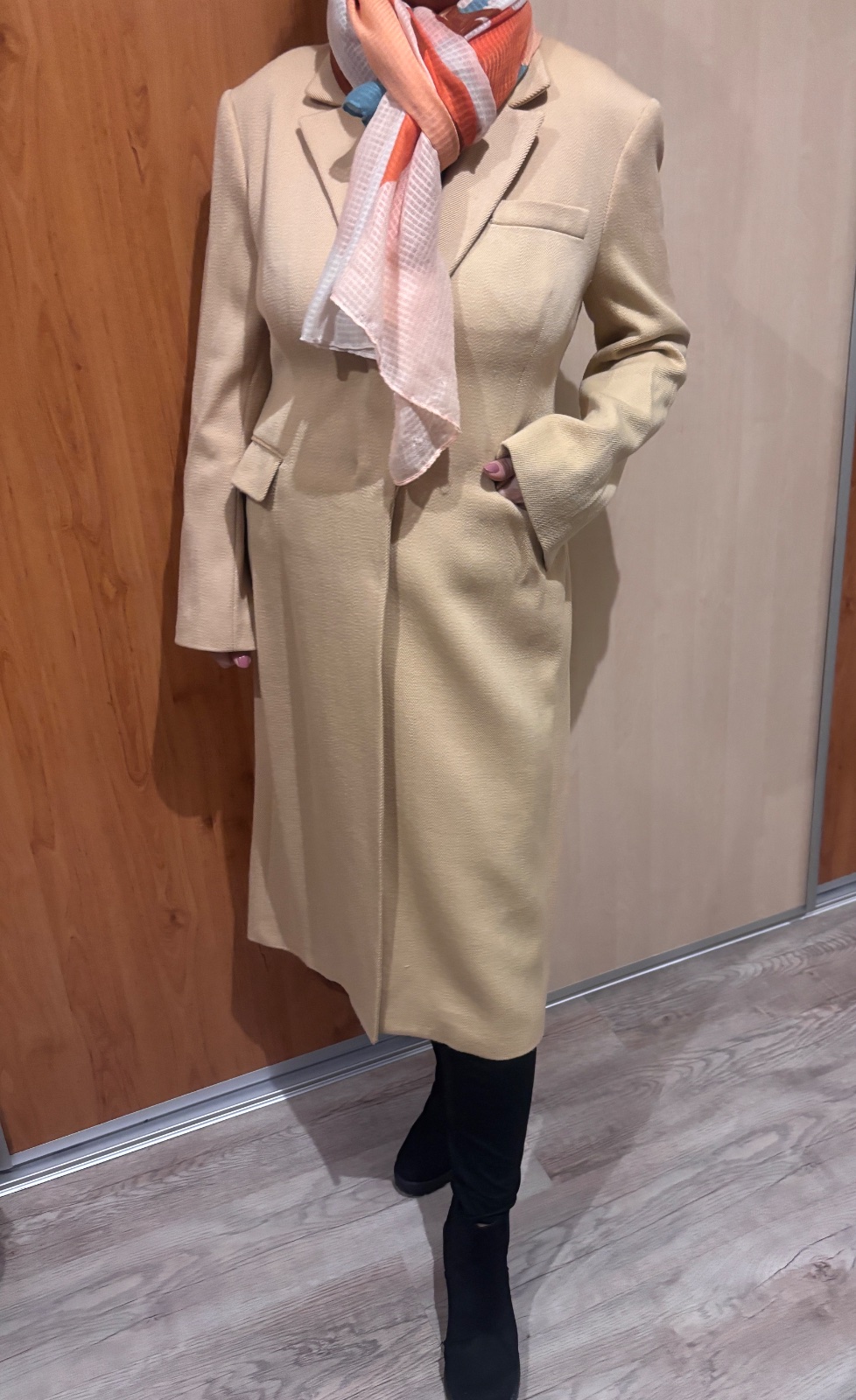 V super stave, oblečený 3x, je mi úzky cez prsia, 2x 50cm, dľžka 115cm, rukáv +place 60+15cm. Kvalitny z mäkkej vlny