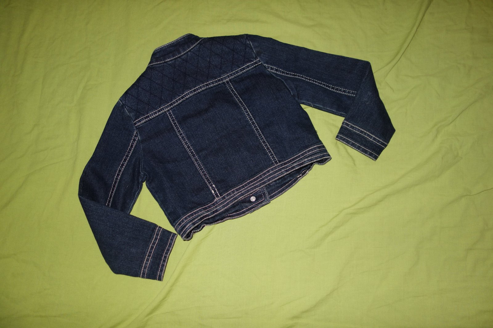 Krasna riflova bundicka vo velmi dobrom stave. Je z elastickej riflovinky. Velkost je uvedena na 4 roky, ale mne sa zda byt mensia.