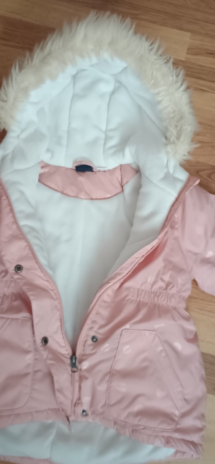 Zimná bundička v zachovalom stave, jedinú malú chybičku má, že trošku popraskalo lemovanie okolo vreciek, snažila som sa aj odfotiť. No netrhá sa to a nebráni to užívaniu, určite ešte poslúži. Rozm...