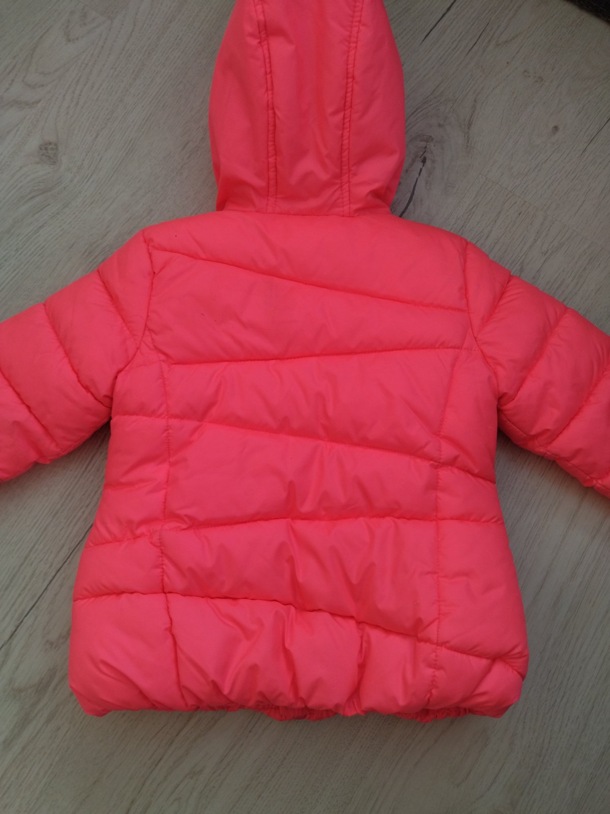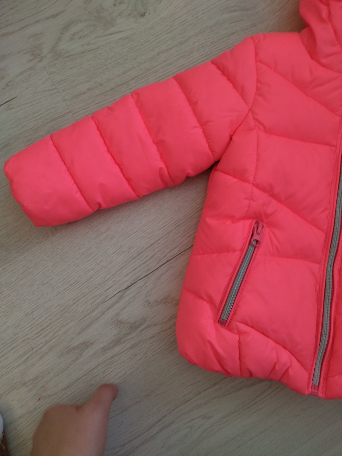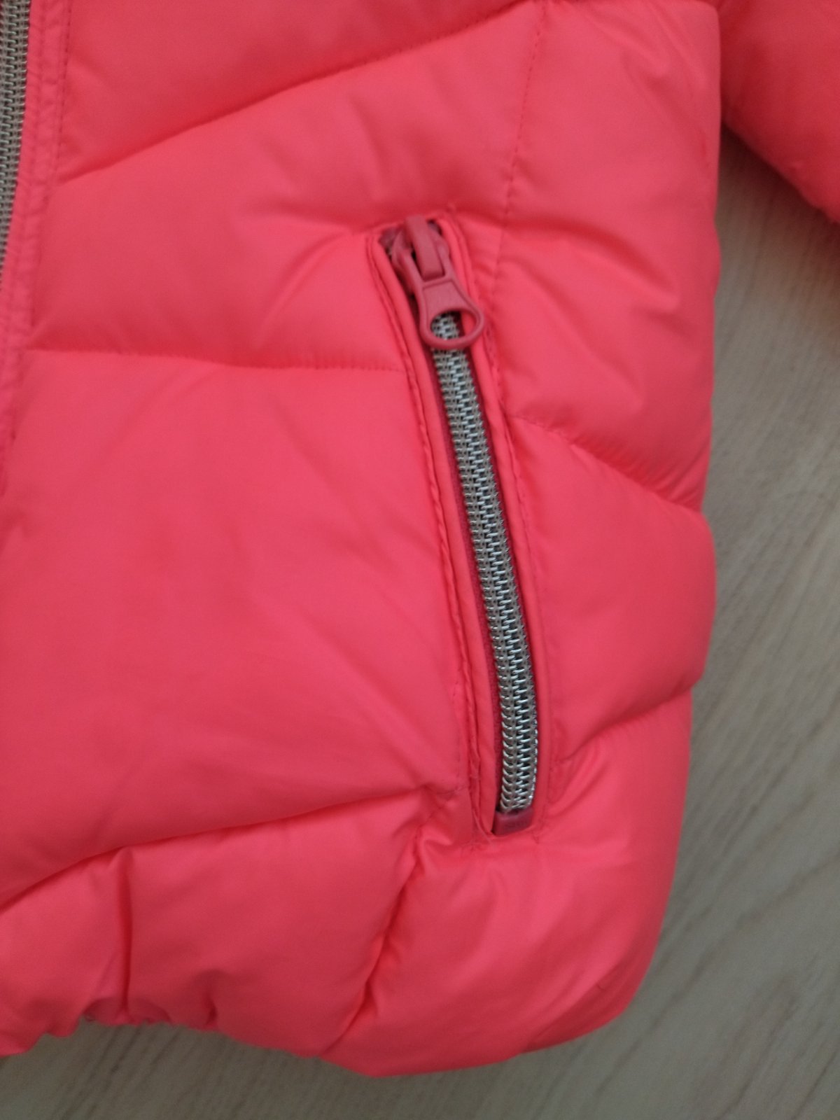 Krásna bundička, len odstrihnuté visacka a vyprata. Dcére boli krátke rukávy. Poslúži aj na miernejšiu zimu, krásne vyzerá oblečená. Farba neonova, ako na foto. Kvalitná, kupovana v C&A v Nemecku. Kvalitne zipsy, sitie, vsetko.