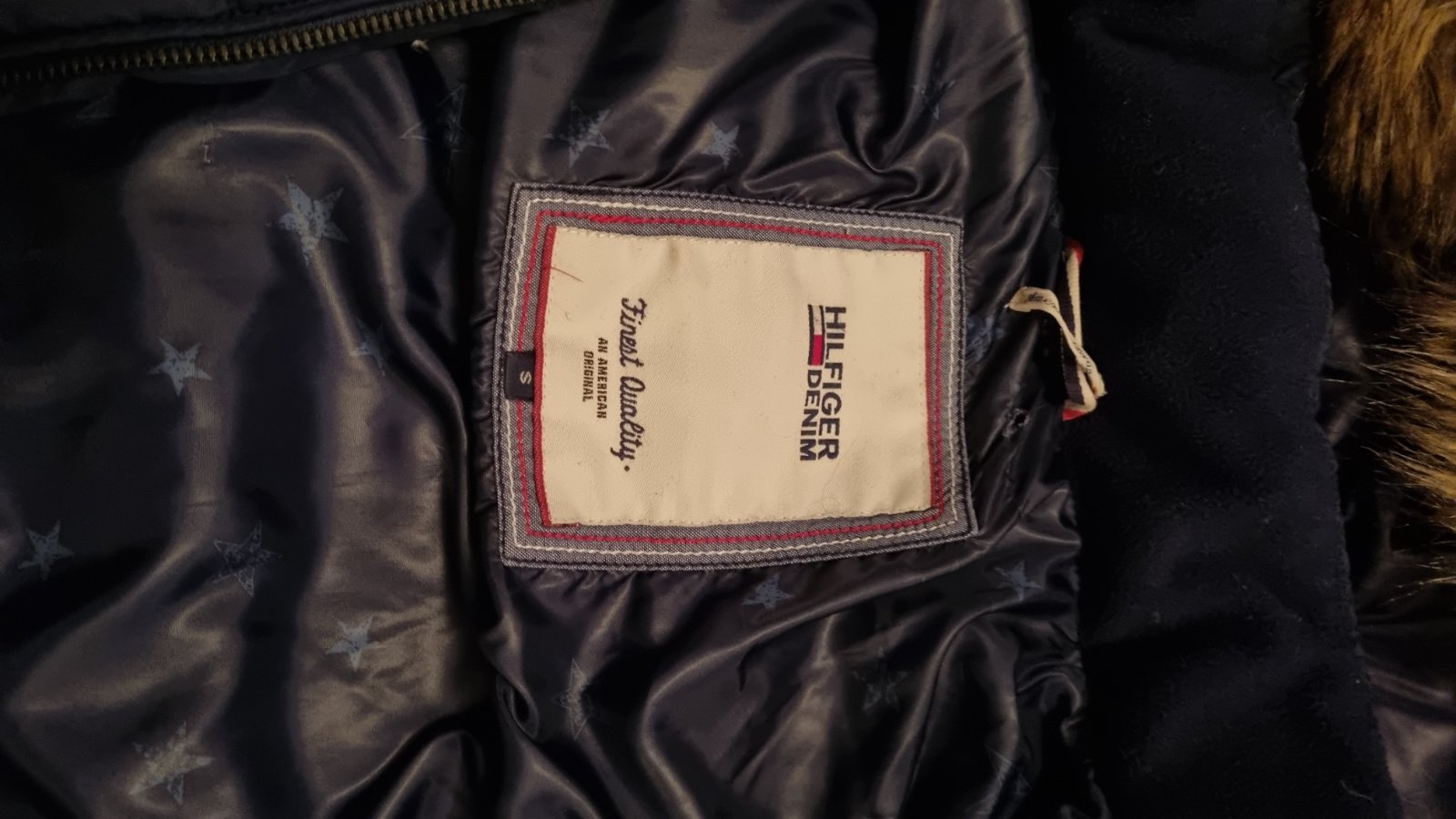 Krásna tepla bunda Tommy Hilfiger, odopinateľna kožušina z goliera , oblečená pár x