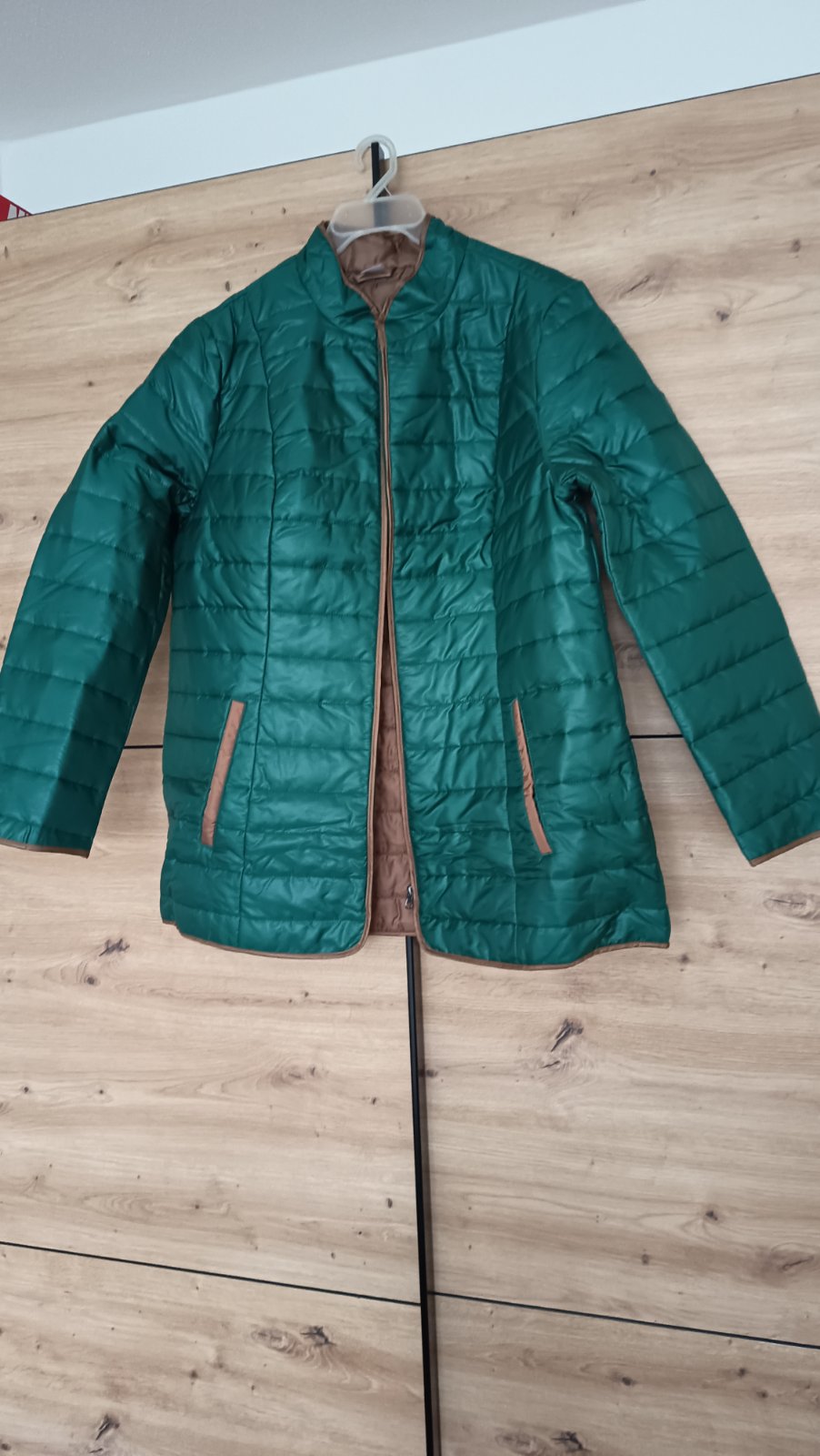Raz oblečená kvalitná bunda velkost sedi 44 s elastanom. Farbu mi nechce zachytit tmava zelena. Pc 95