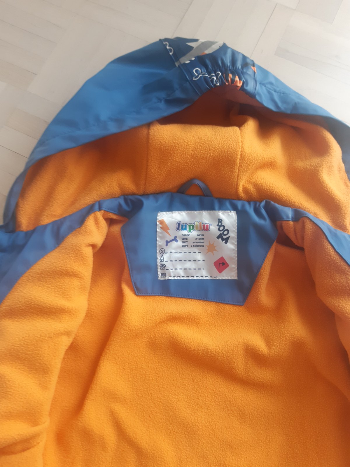 Bundička Lupilu v. 104, vhodná na prechodné obdobie alebo miernejšiu zimu, ľahká, má 3 vrstvy - vo vnútri tenšie zateplenie, kombinácia farieb tmavomodrá - čierna, reflexné prvky, málo nosená - na ...