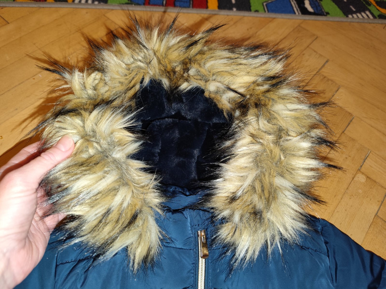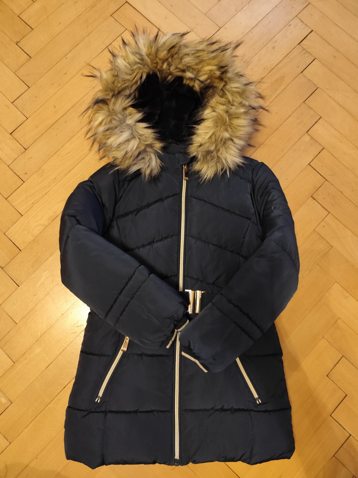 Top stav, farba tmavo tmavomodrá, opasok, kožušinka sa dá odopnúť