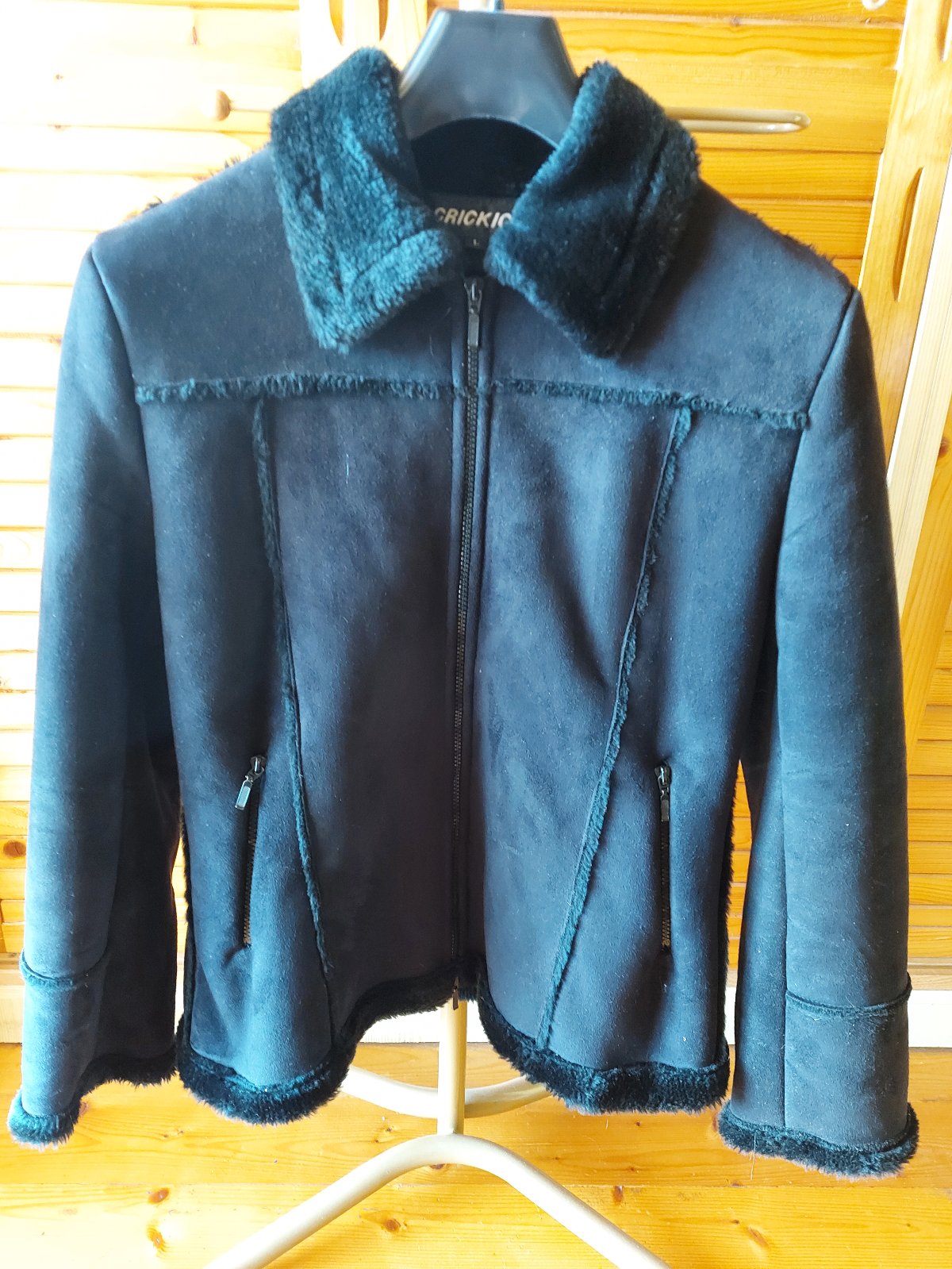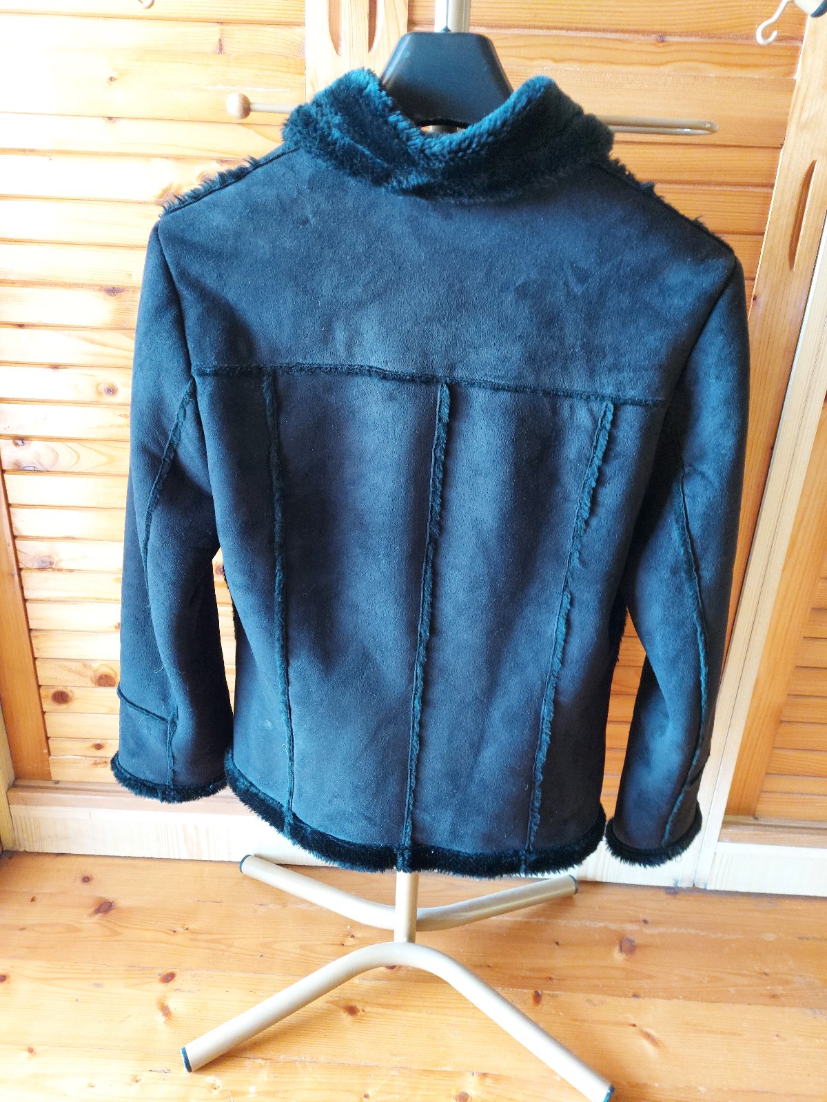 Krátka bundička/kabátik, vnútri kožušina, na zips, š. pod pazuchami 50, d. rukáva 60, d zadného dielu 62