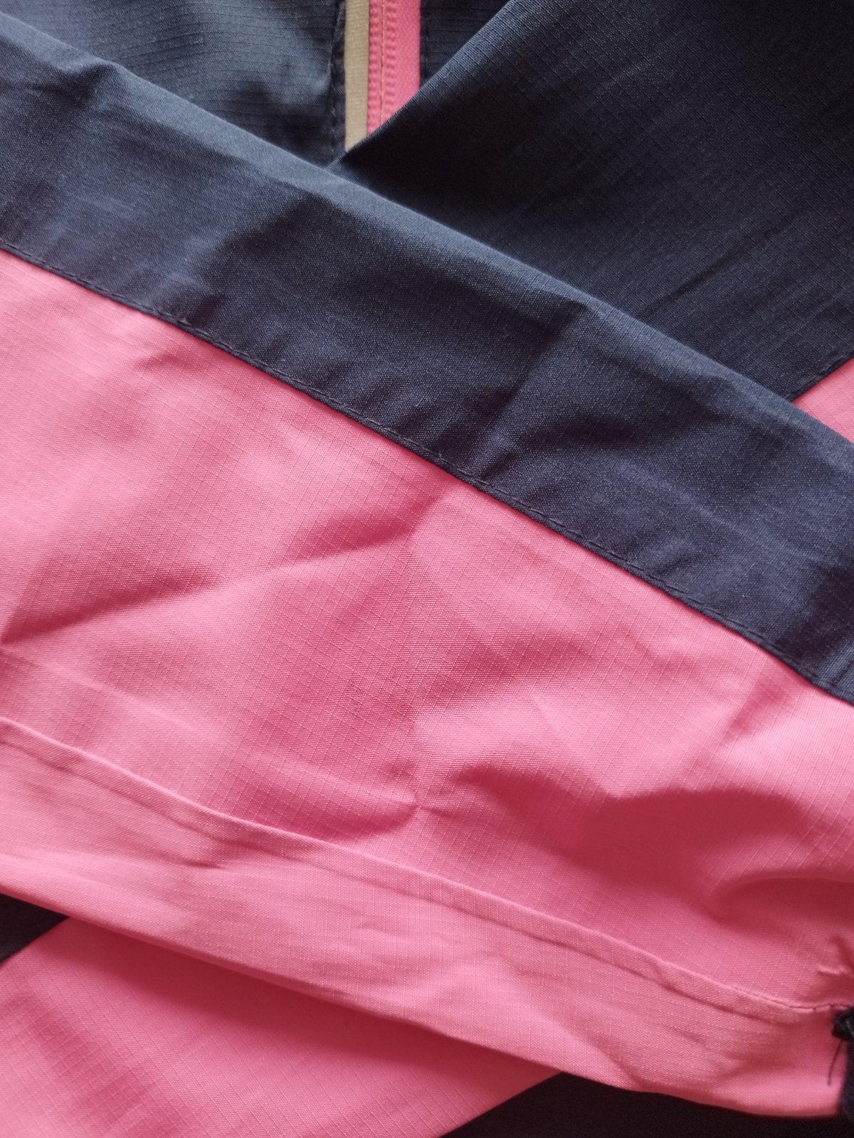 Šuštiaková bunda č.36/38, tmavomodrá so svietiacou ružovou. Celková dĺžka predný diel 61cm, zadný diel 68cm, šírka pod pazuchami 2x48cm, rukáv od krku 74cm, spodný rukáv 53cm, na rukáve malý fliačik, viď foto. Vynikajúci stav.