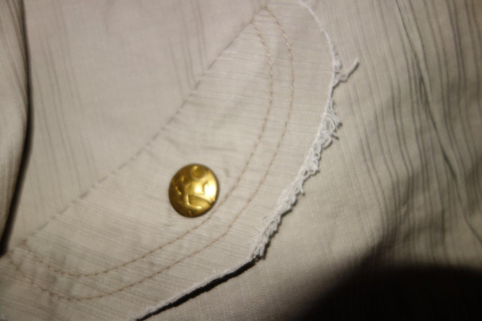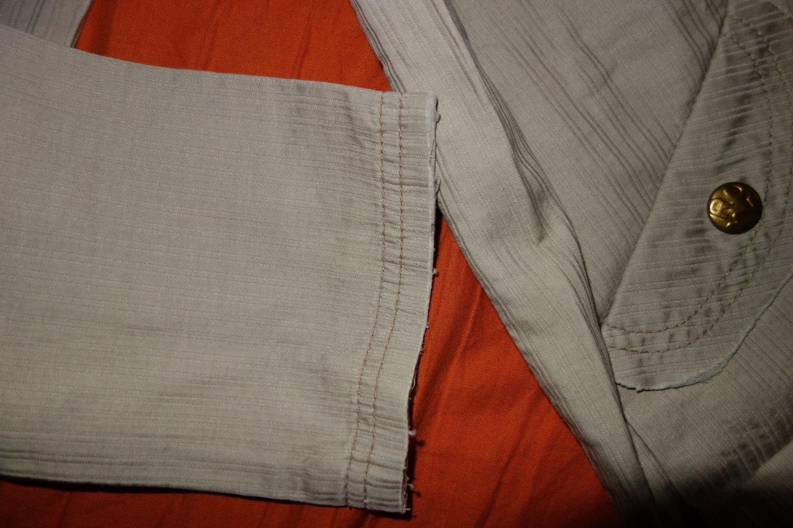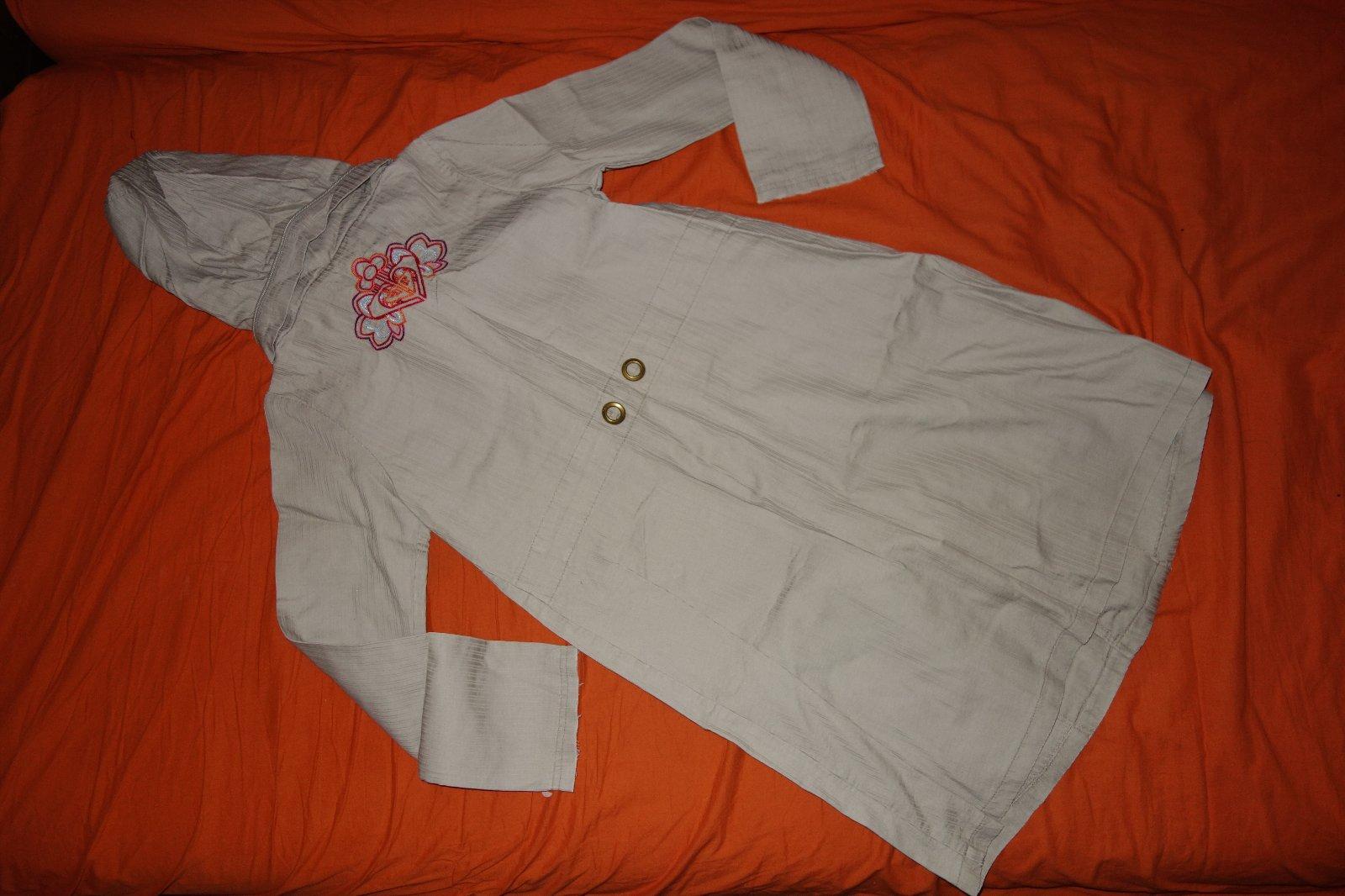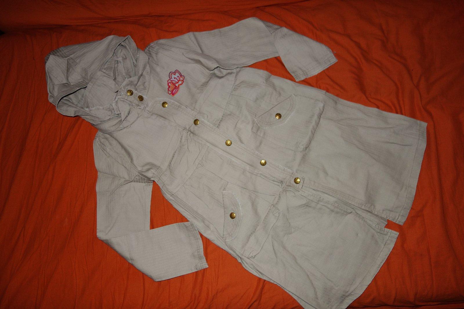 Krasny kabatik vo vybornom stave- ako novy. Je tenky, nie je ani podsity, ale latka je taka trochu hrubsia (skoro ako riflovinka). Kapucna sa da schovat do goliera. Je takej bledosivo-bezovej farby.