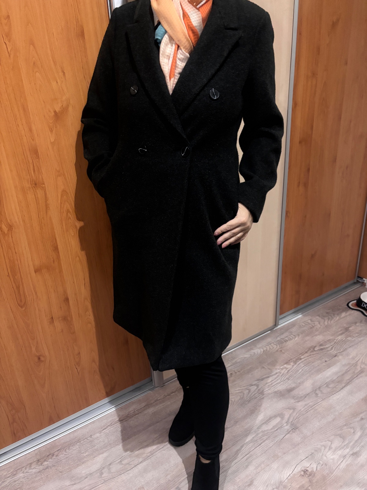Predám krásny kabát veľkosť 40, vhodný akurát na toto obdobie, prechodné, ale aj do miernej zimy. Štýl military, má zlaté gombičky, od pása dole dvojradová suknička. Krásne ukáže na postave, no mne...