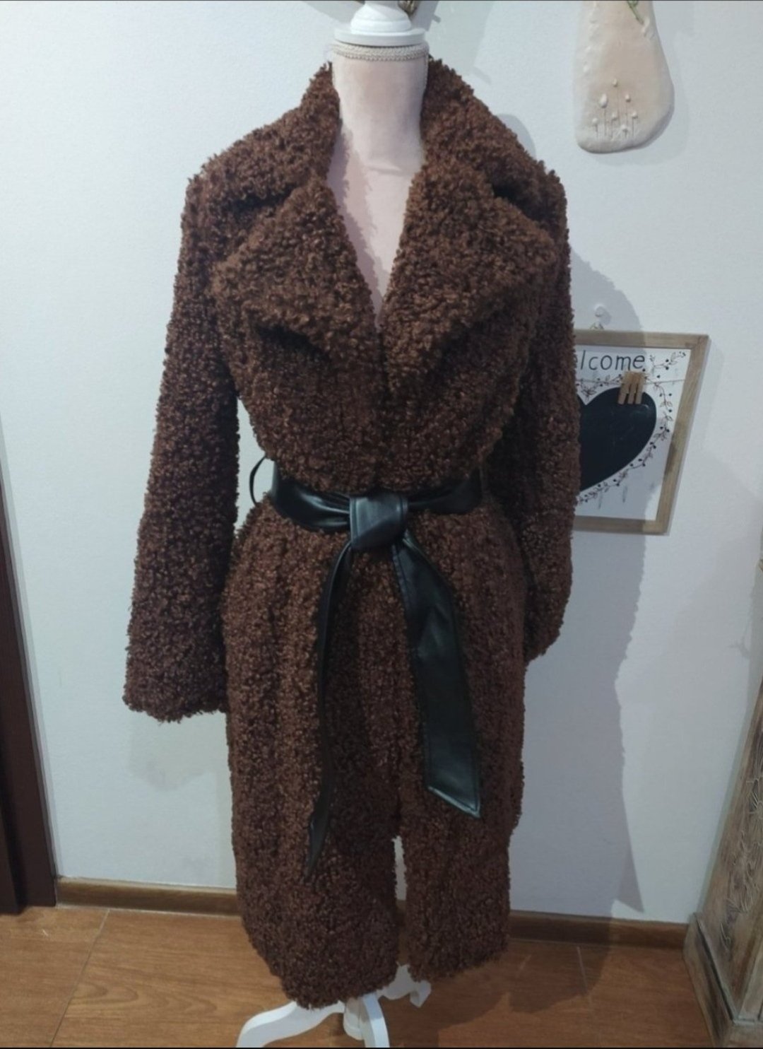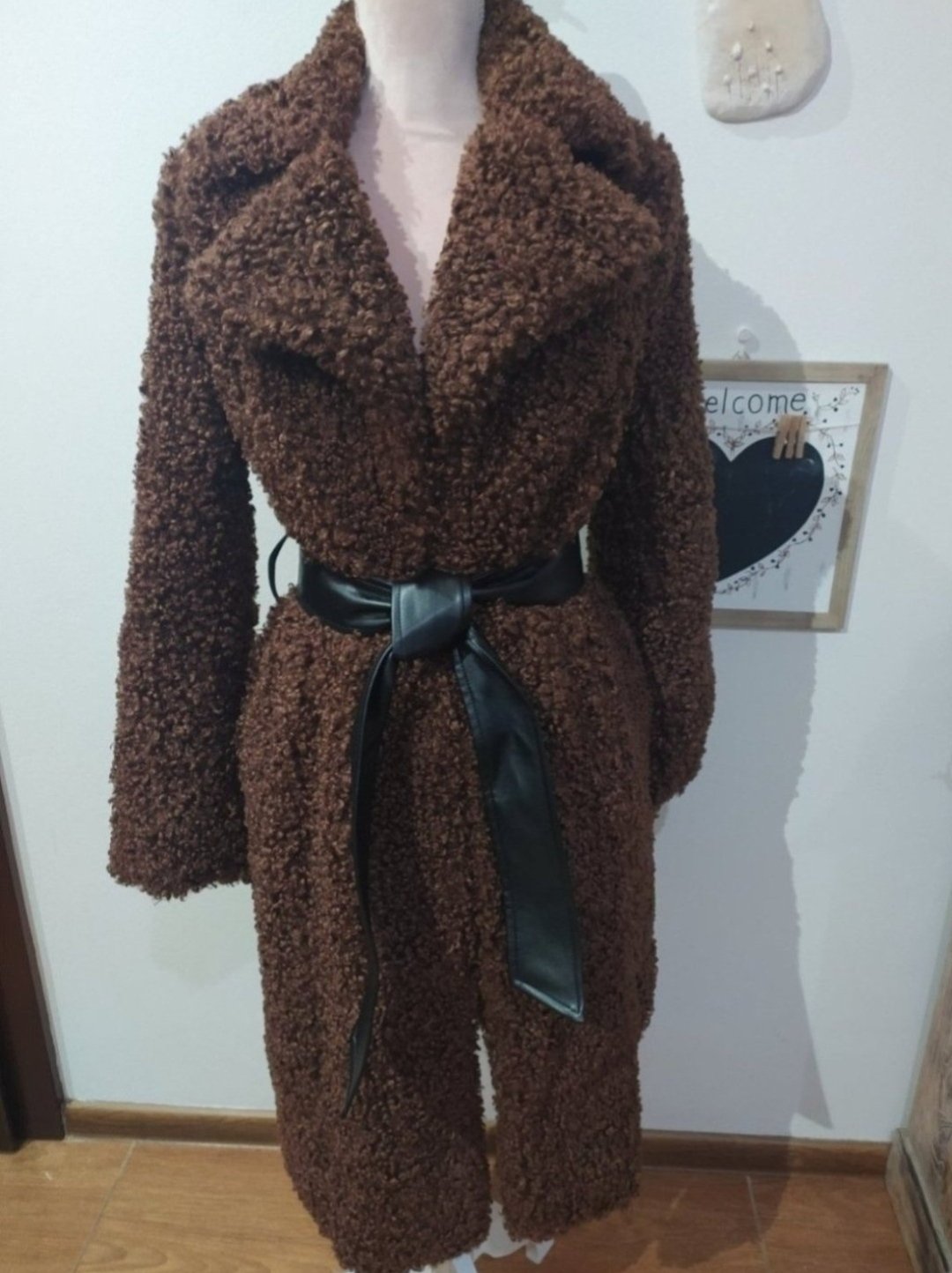 Nádherný Teddy kabát v top stave,doplnený kozenkovym opaskom.zapinanie na patenty Pc80€