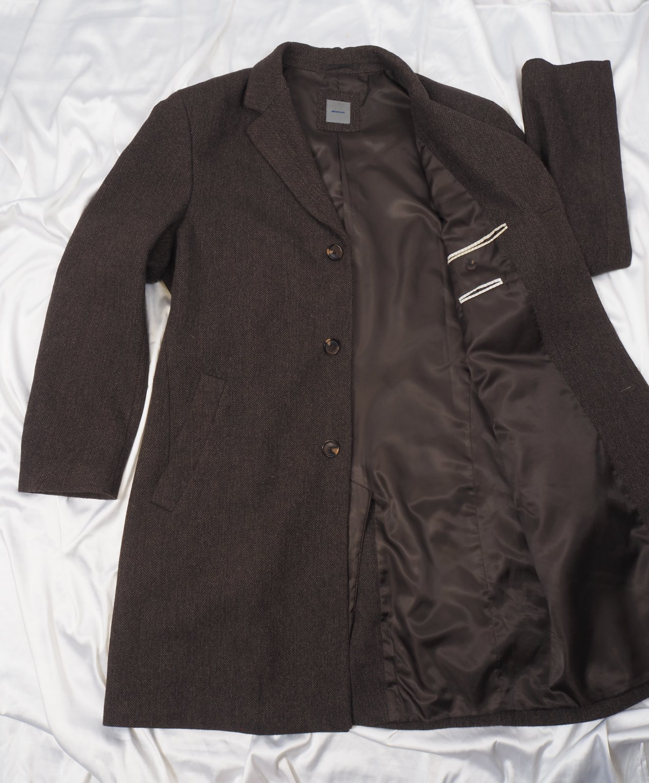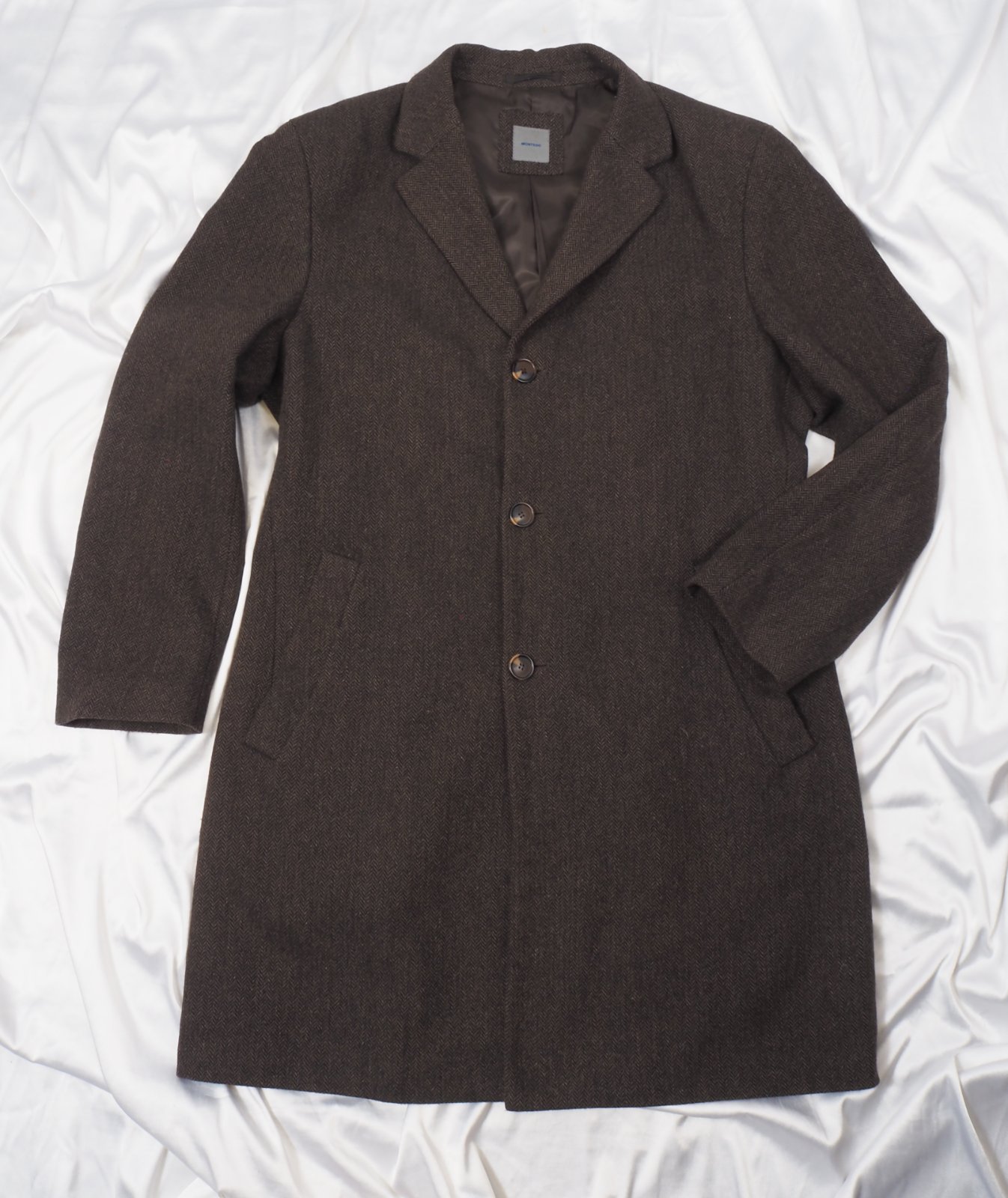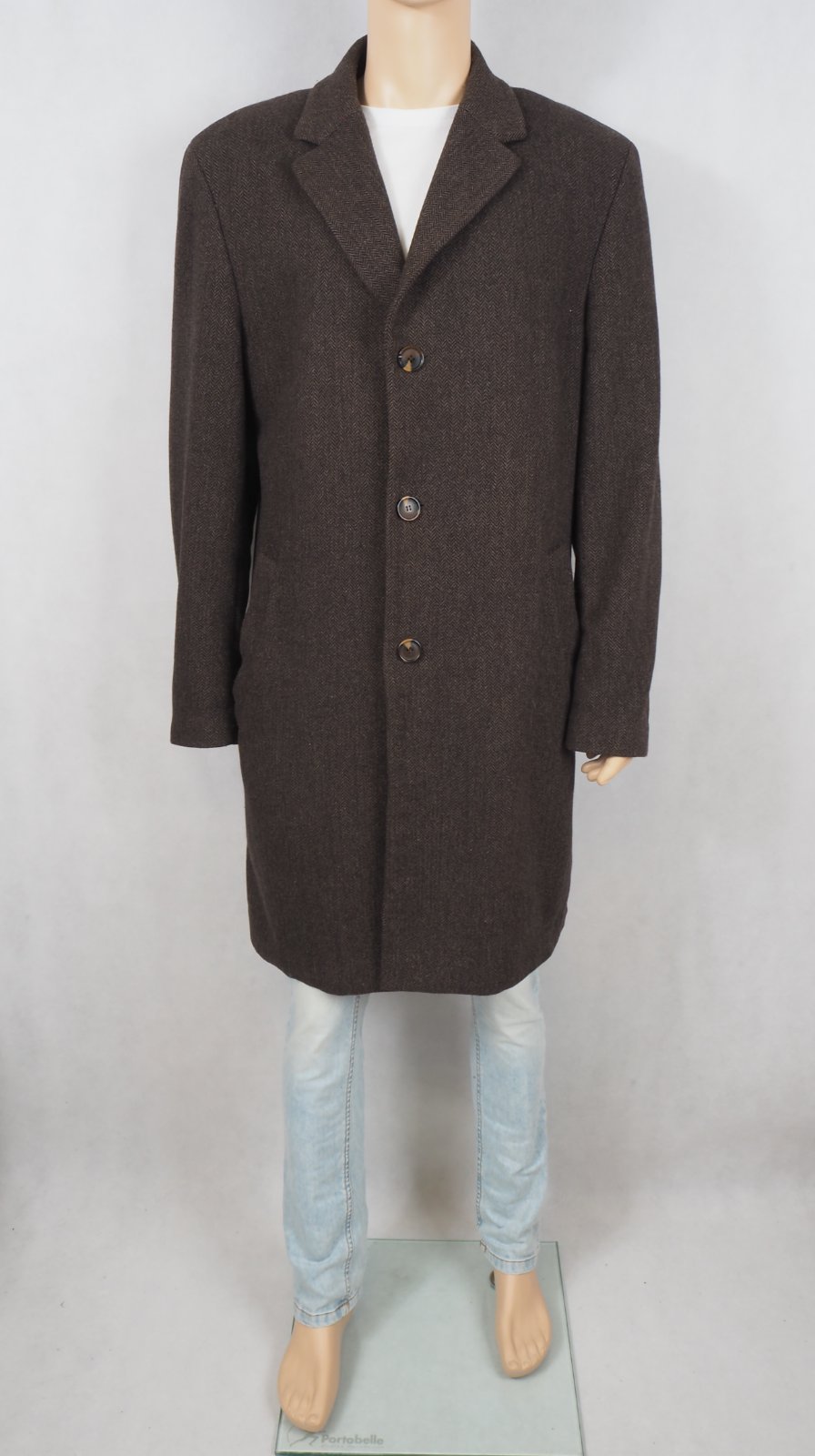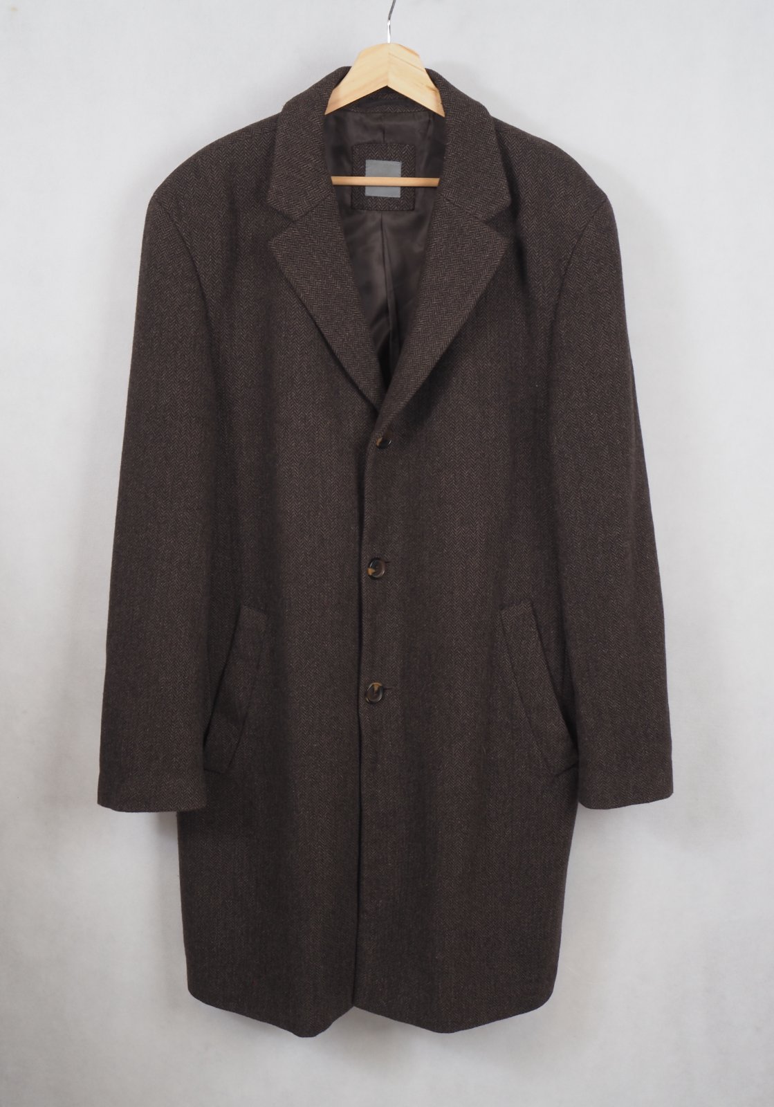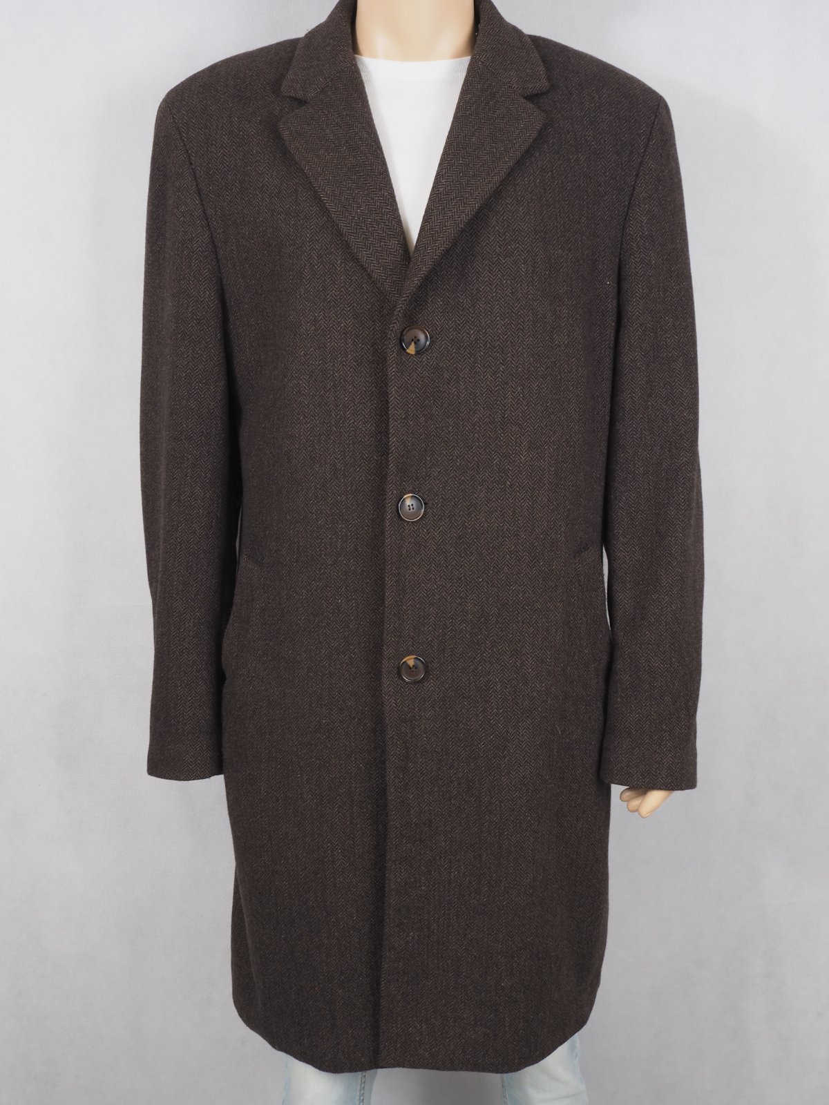 Luxusný pánsky kabát tmavohnedej farby, drobný vzor, materiál 70% vlna, 30% nylon, super s tav, málo nosený.