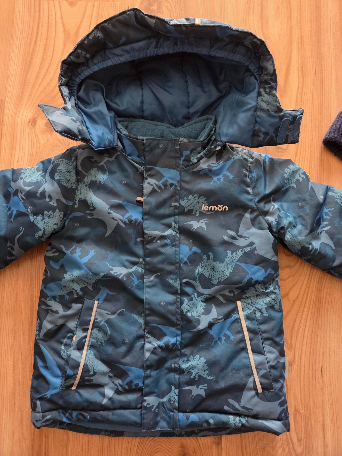 Posuniem našu obľúbenú zimnú bundu s motívom dinosaurov zn. Lemon v peknom nosenom stave, má malé známky nosenia (viď foto). Pridám čiapku zn. Vertbaudet (je menšia ako udávaná veľkosť).