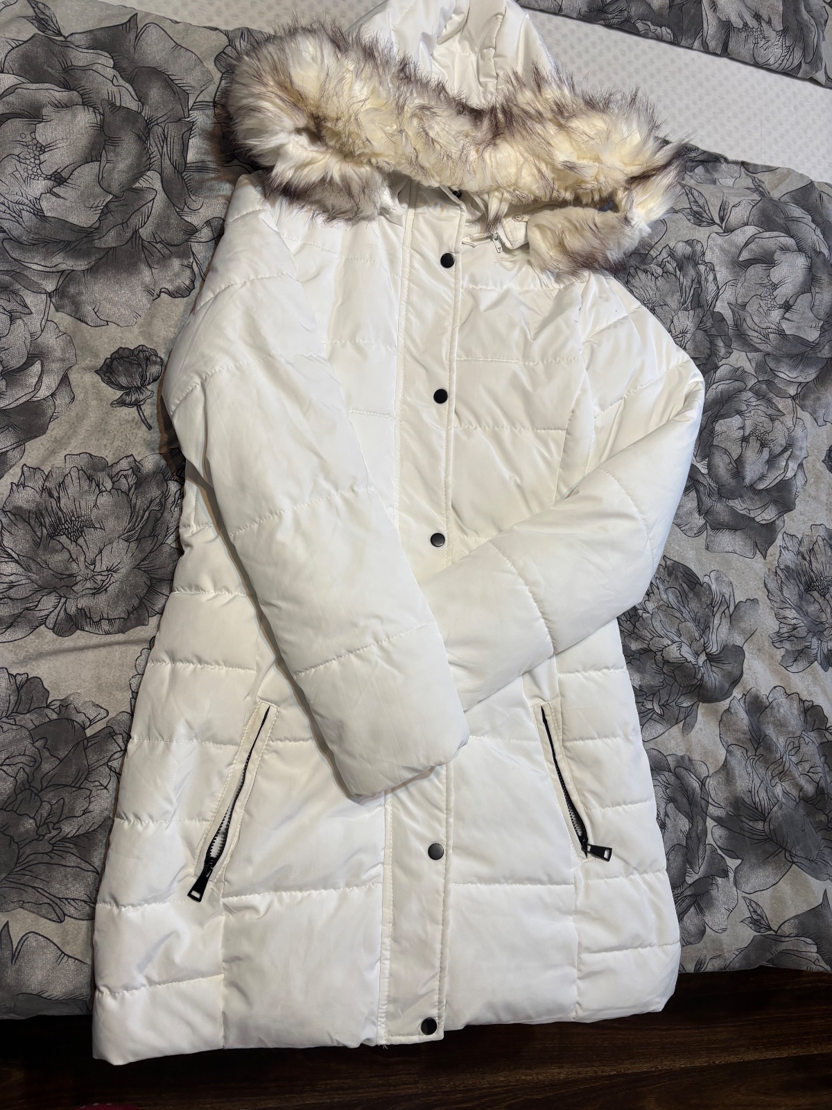 Zimná pekná bundička Stala 54€ par x vzatá kapucňa sa dá odobrať dlhá 68 široká 2 x 50 cm