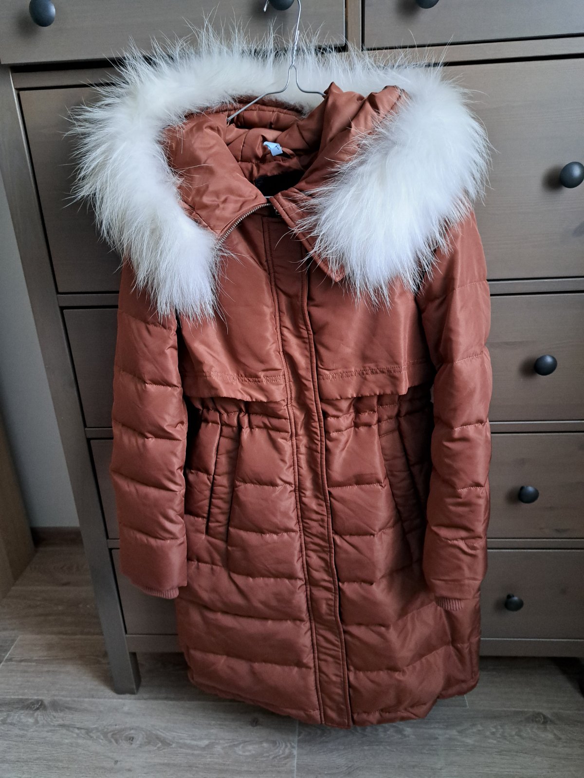 Krásna bunda na zimu (výplň perie), značka Only, veľkosť S. Nosená minimálne a len jednu sezónu, práve vyčistená v čistiarni. Dĺžka 90cm, prsia 48cm, rukáv 92cm. Z vnútornej strany posilnený šev, trochu sa uvoľnil. Okrem toho 100% stav.