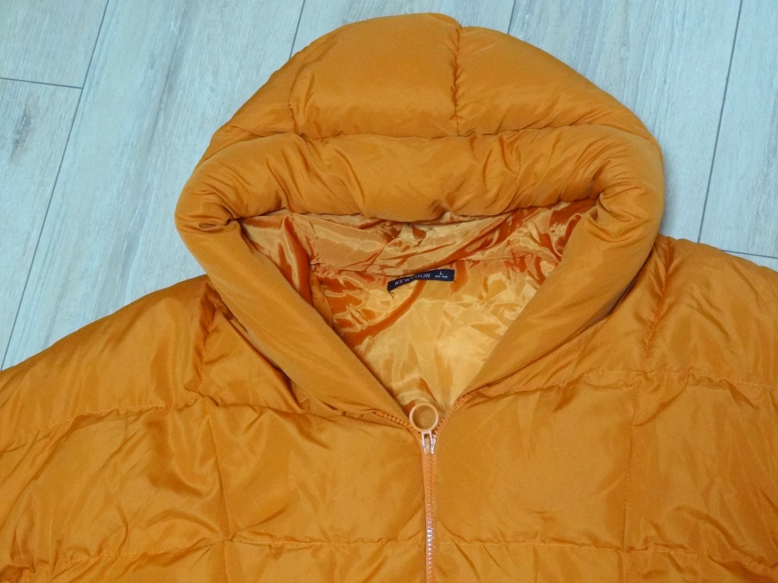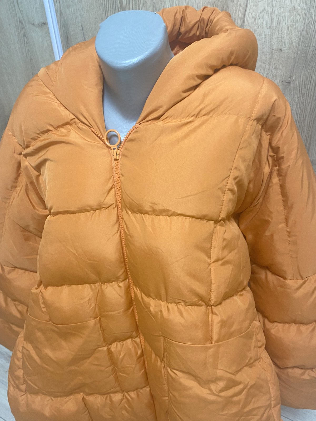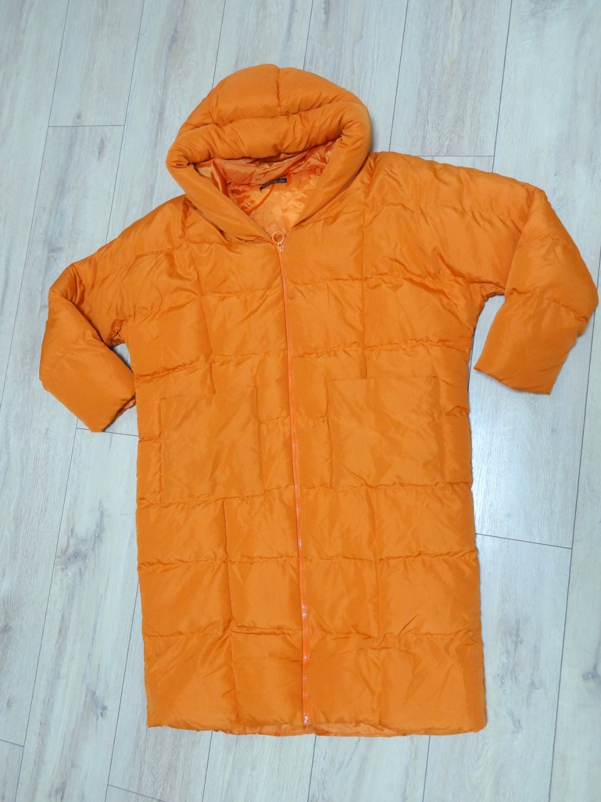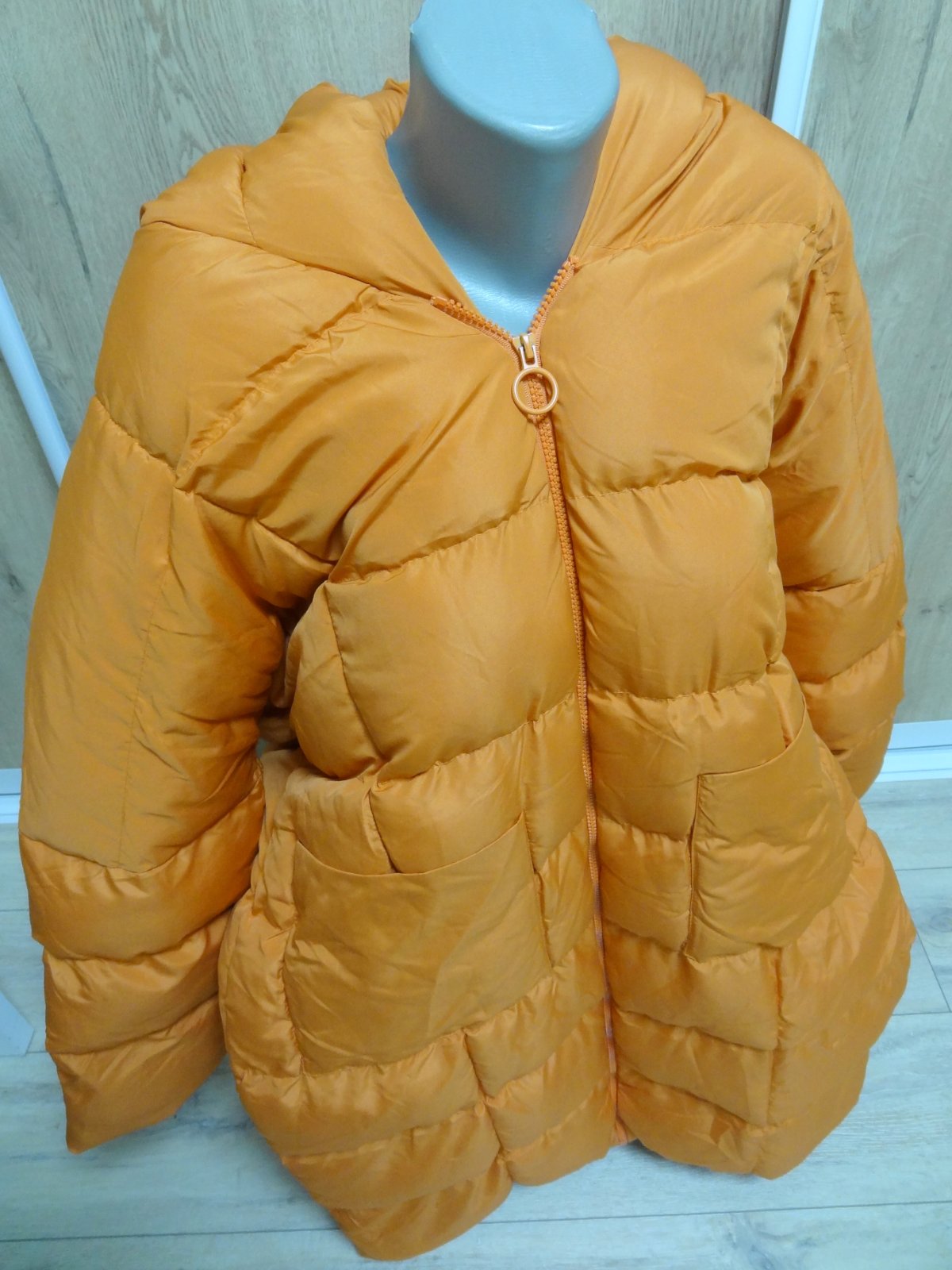 Dámska zimná bunda vetrovka .... top stav, ako nová ... v oranžovej farbe .... s vreckami a kapucou ... oversize strih ... veľ. 40 - 42, ale kľudne aj na 44 .... dlžka 104 cm, šírka pod pazuchami 68 cm, šírka pás 64 cm