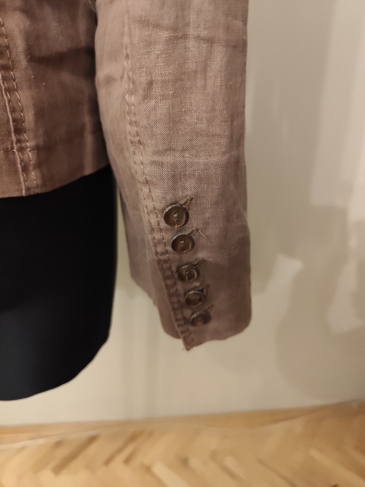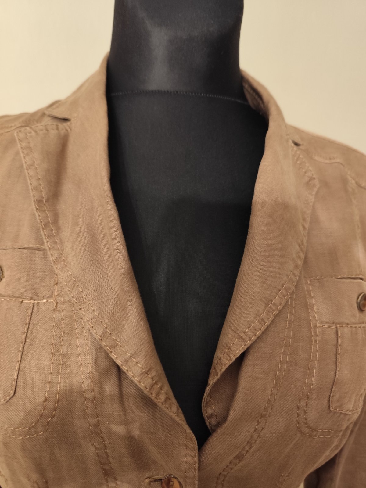 Predam pekne bledohnede sako. Material je tensi, akoby bavlna s lanom.