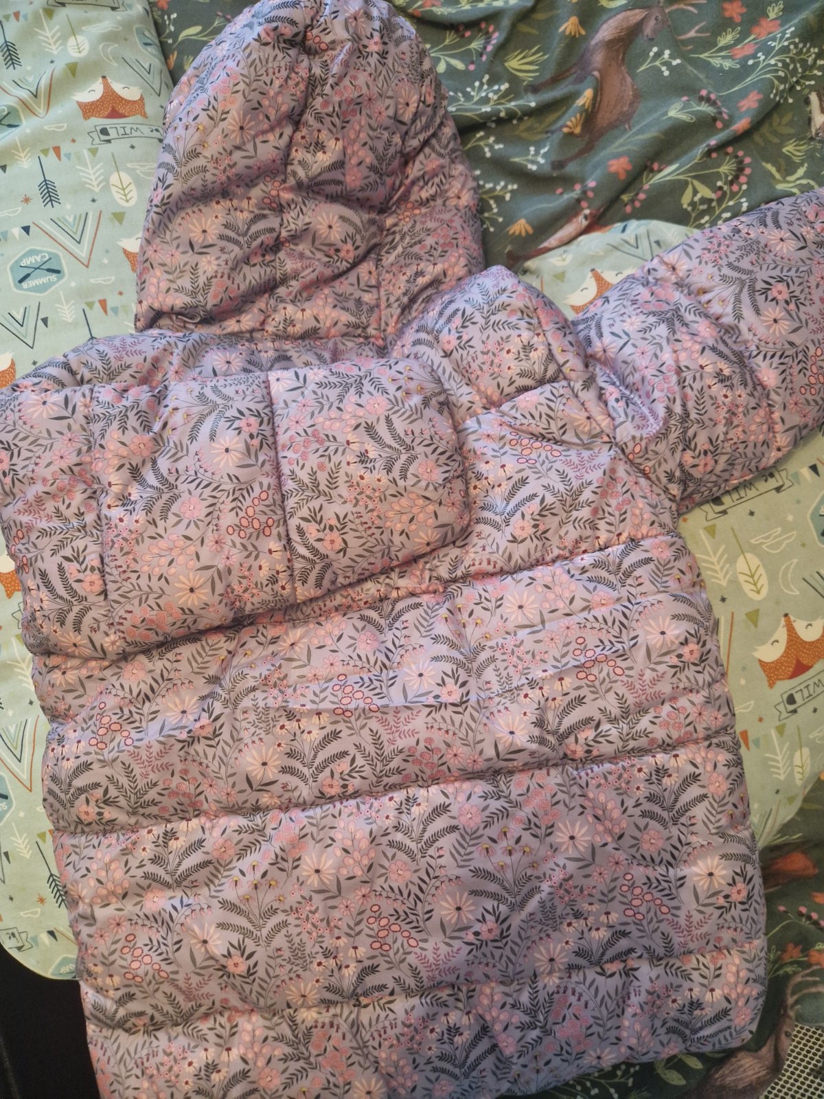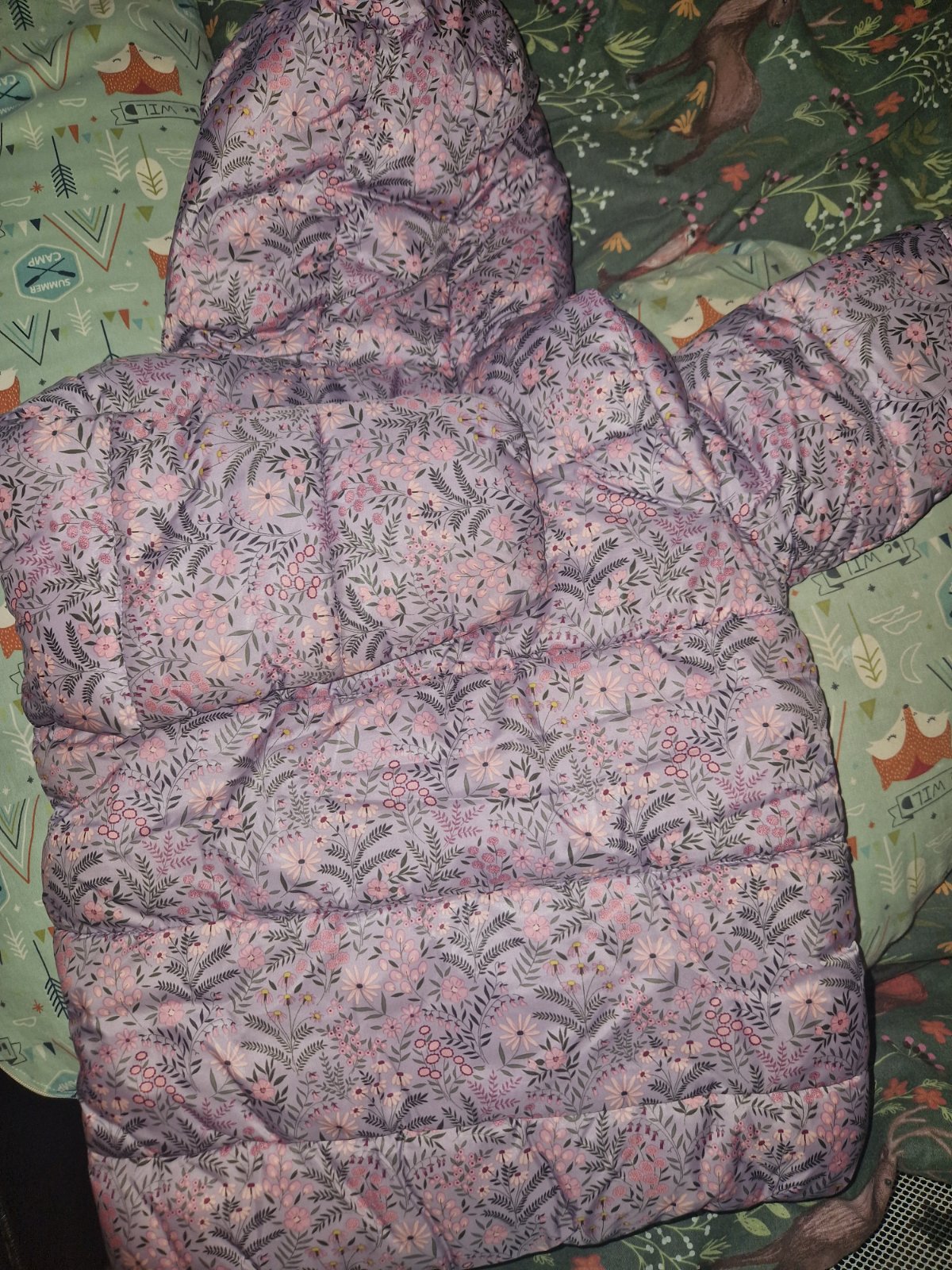 Bez poskodenia bunda je robená do pasu,veľkosť písanàa 2-3roky,dlžka 38cm,dlžka rukávov 37cm...kapucňa sa dá dať dole...bunda je bez poškodení len patenty sú trošku vyblednuté...cena+poštovné