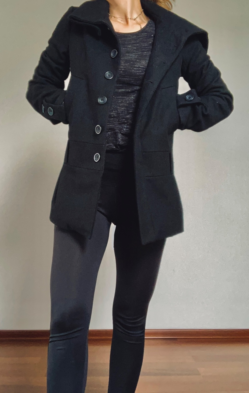 Predám čierny zachovalý kabátik “áčkoveho” strihu v top stave. Zapínanie na gombíky, hlboké bočné vrecká, zapínací vysoký golier, možnosť viazania opaskom. Cena: 15€ +poštovné (3€)