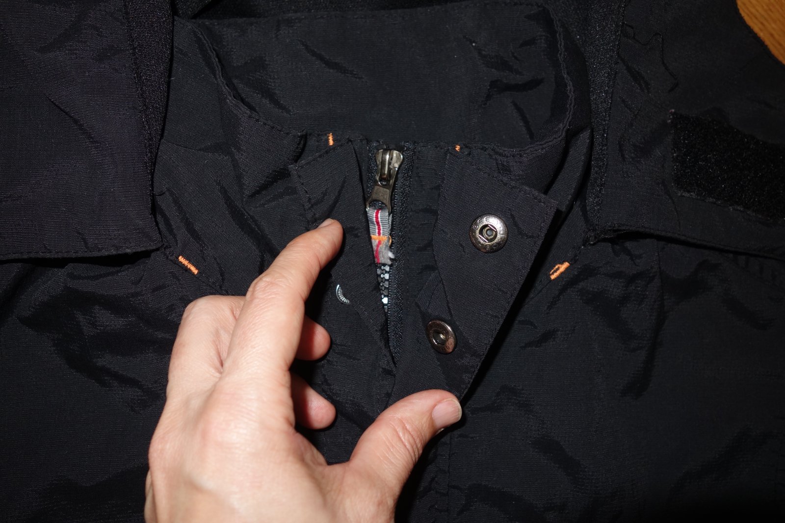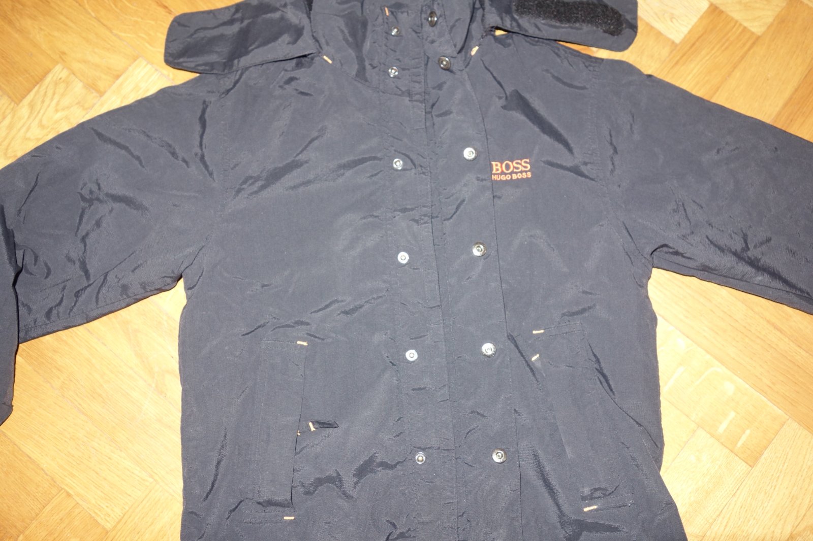 Výborný stav. Zapínanie na zips a cvoky. Kapucňa napevno všitá.