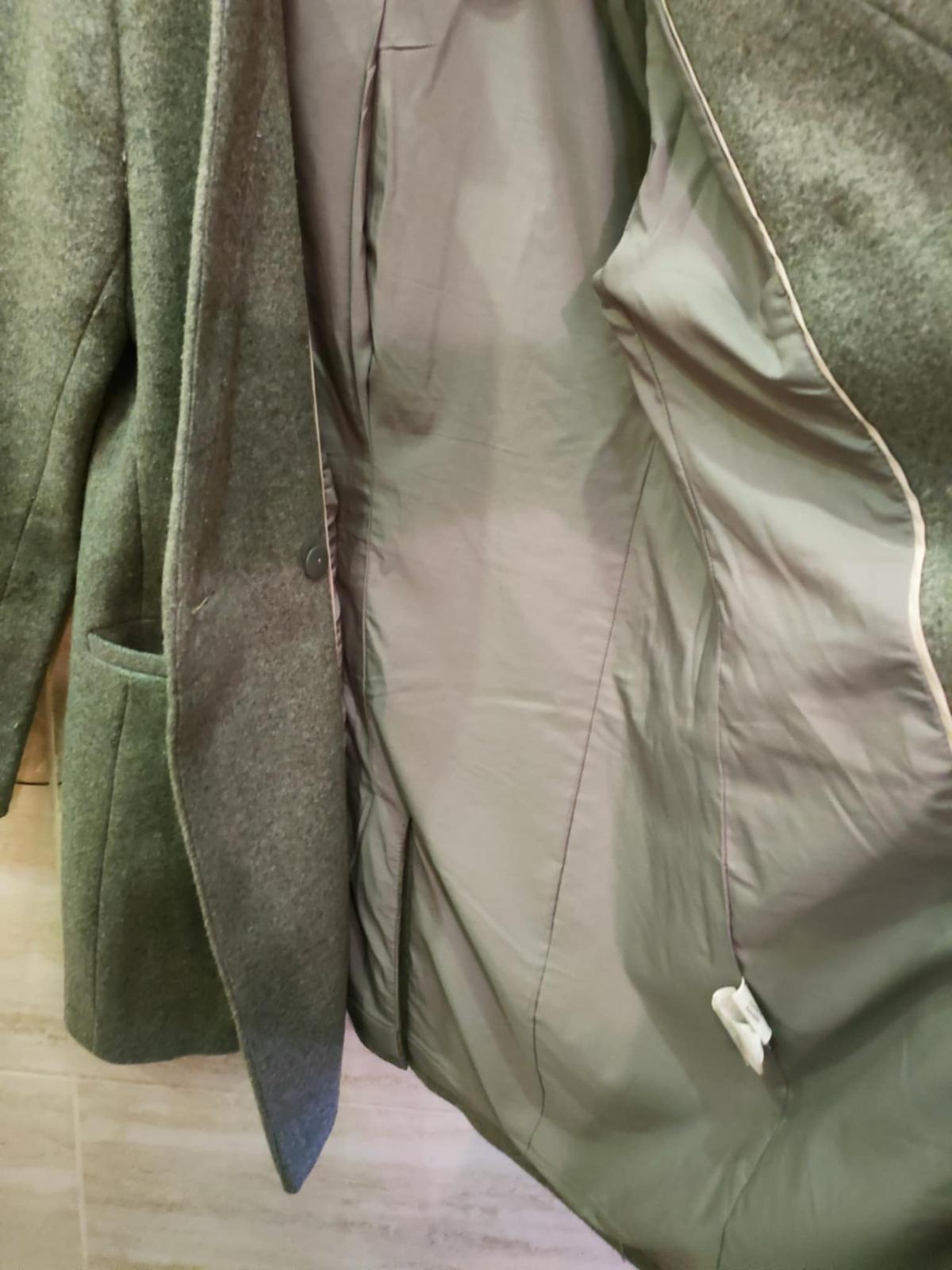 Posuniem kabát, veľkosť 40, ale je väčší. Nosený, bez poškodení.