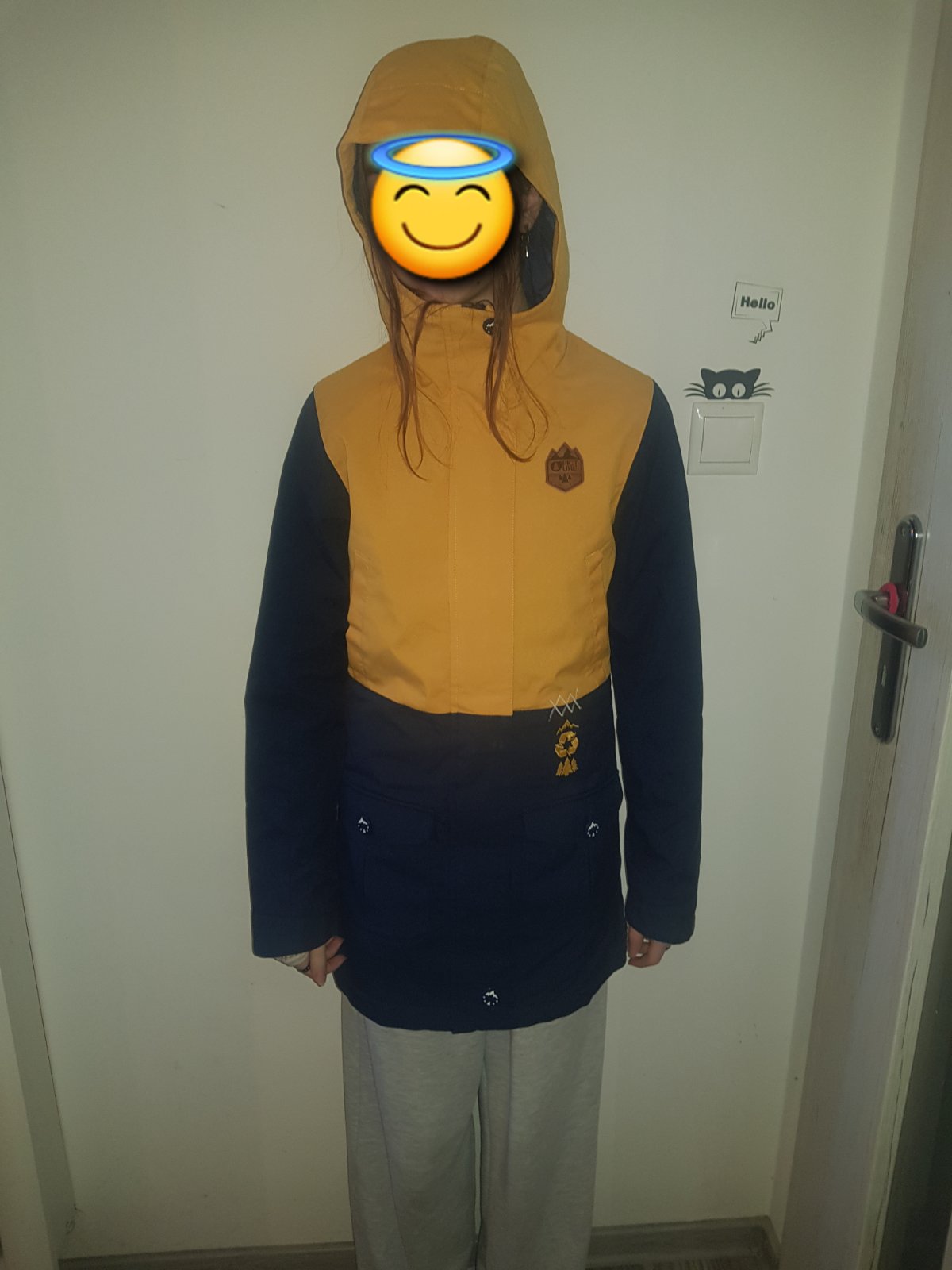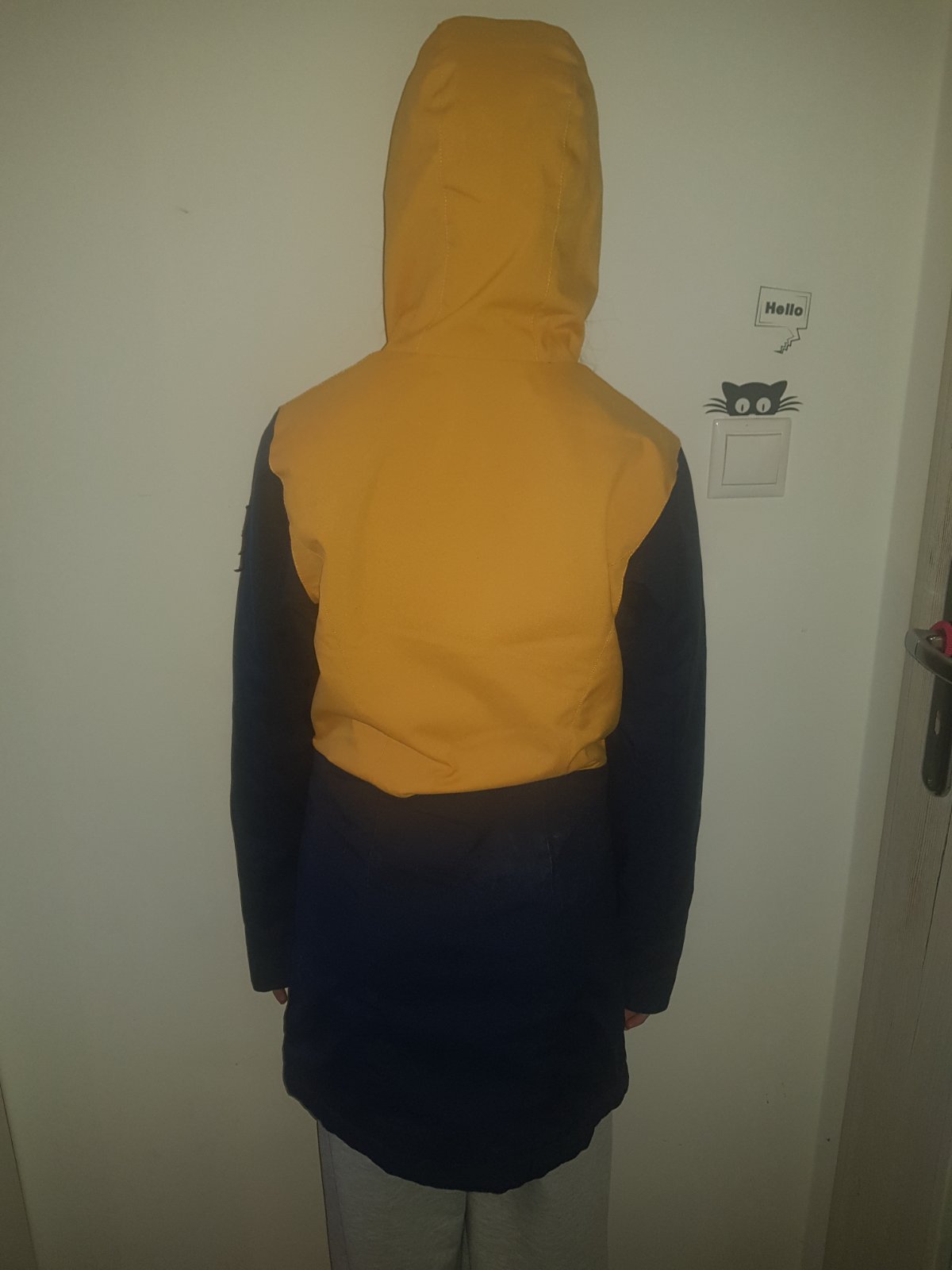Odopínateľná kapucňa, zoštíhlujúci strih, nosená ale stále ok.