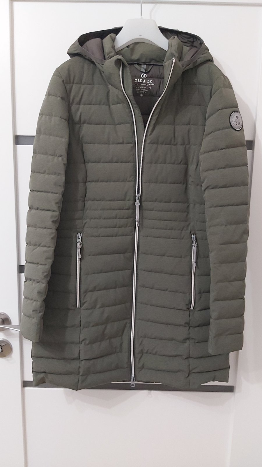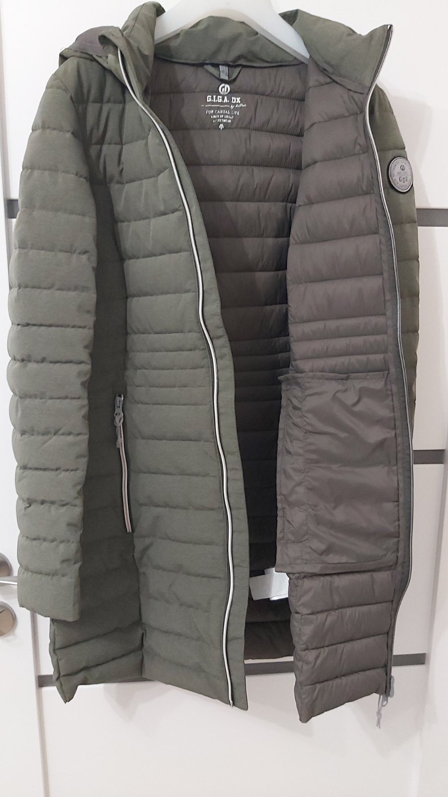 Outdoorová prešívaná bunda je priedušná, rýchloschnúca, vodeodolná a vetruodolná. Má vysoký, polstrovaný stojačik s odnímateľnou, polstrovanou kapucňou. Obojsmerný predný zips, vysoké zapínanie. Bočné vrecká na zips. Lemovanie a švy tón v tóne. Ľahko zateplená a podšitá. Farba olivovo zelená. Veľkosť 36-38. Dĺžka bundy 83cm, dľžka rukáva 63cm, obvod hrude 98cm, obvod pasa 86cm, obvod bokov 108cm.Všetko merané na bunde! (Miery na postave obvod hrude 88cm, obvod pasa 70cm, obvod bokov 95cm) Málo nosená. (Posledné 2 foto, viď bunda na postave.)