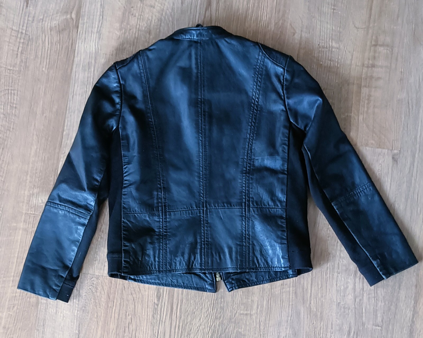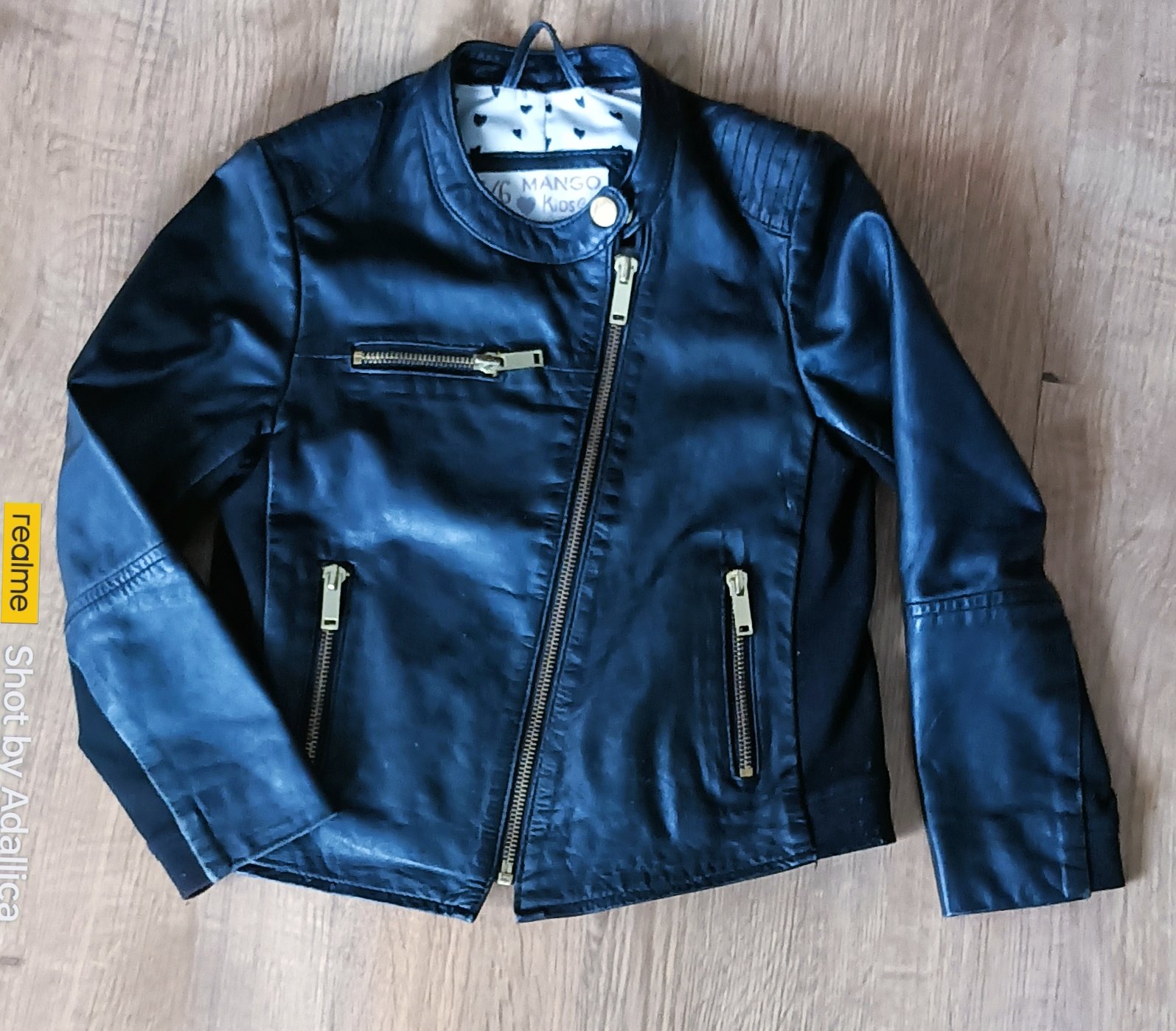 Kožená bunda sidovka z pravej kože, takže vám nepopraská, na rukávoch a bokoch s elastickými vsadkami. Má milú podšívku so srdiečkami. Pekný nosený stav